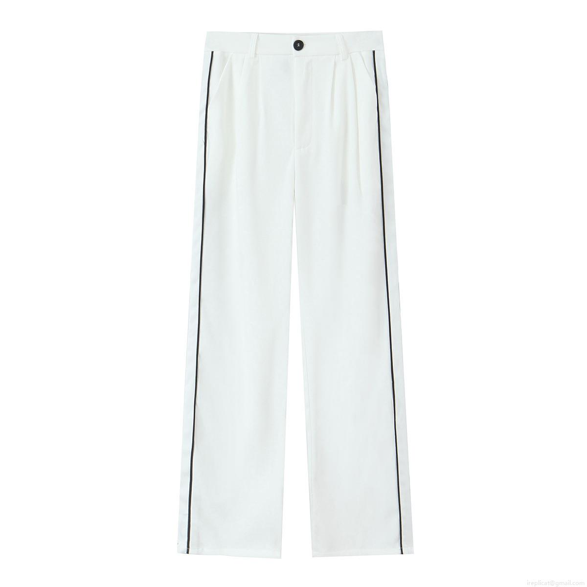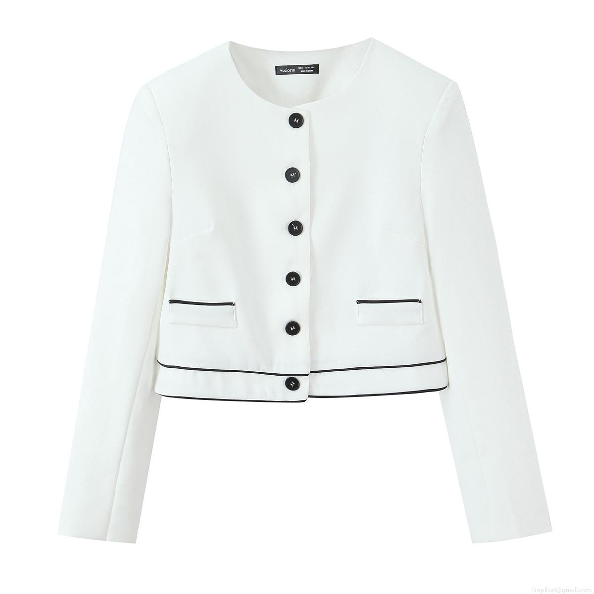 • Women's 2 Piece Polyester Suit Set Elegant Contrast Trim Round Neck Blazer and Straight Leg Pants Office Lady Casual Streetwear White Outfit