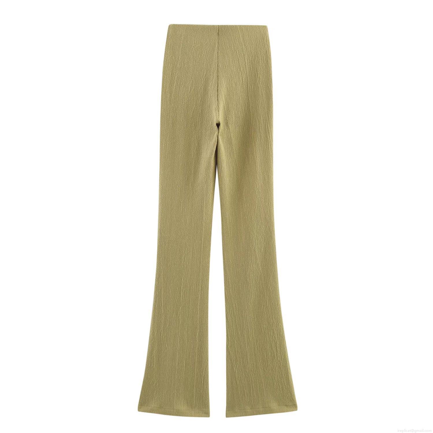 Solid Color, Button Decoration, Ribbed Strip, Vertical Stripe Groove, Flared Trouser Legs
