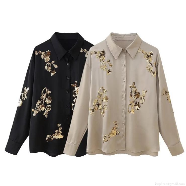 • Women's 2 Piece Satin Pants Set Elegant Sequin Floral Embroidery Long Sleeve Button Down Shirt And Elastic Waist Wide Leg Pants Set For Party Holiday Vacation Vintage Outfits