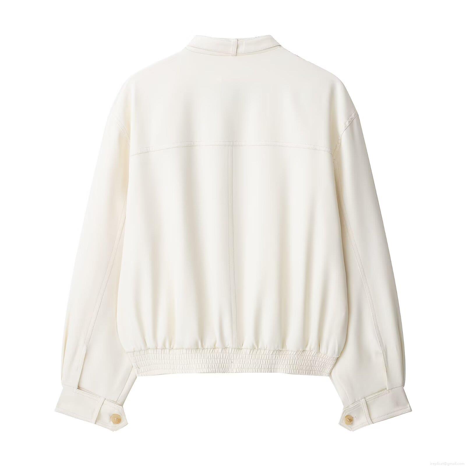 Women's 2 Piece Set 100% Polyester Stand Collar Button Up Jacket and High Waist Pleated Wide Leg Pants Elegant Casual Streetwear Outfits for Lady