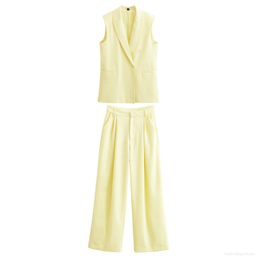 Women's 2 Piece Set Casual Vest And Wide Leg Pants Solid Color Double Breasted Waistcoat High Waist Trouser Suit Streetwear Office Lady Outfit