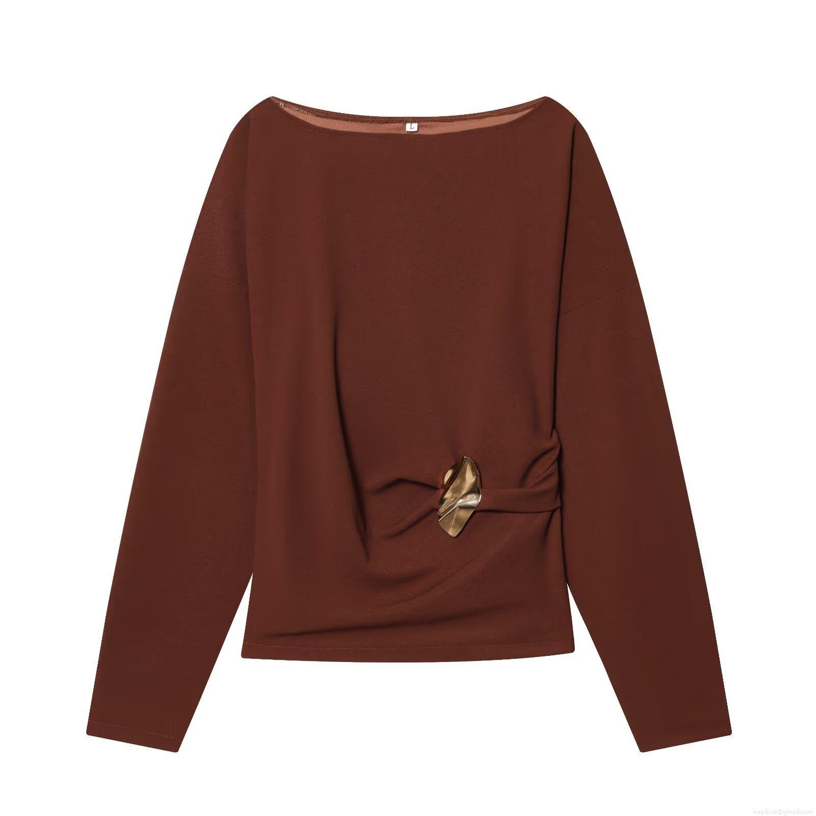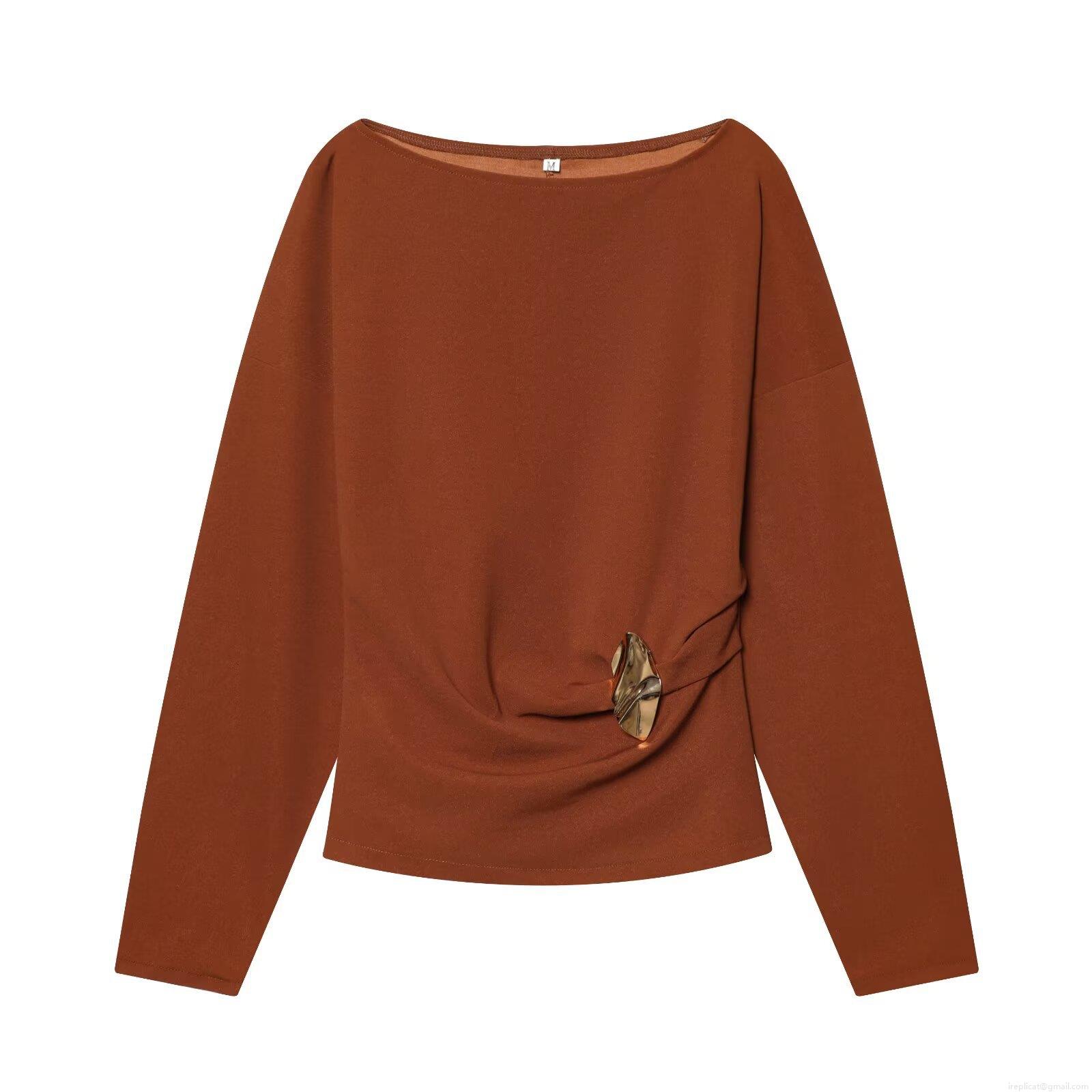 Solid Color, Metal Buckle, Off-the-shoulder Neckline, Pleated Design, Wide-leg Cut