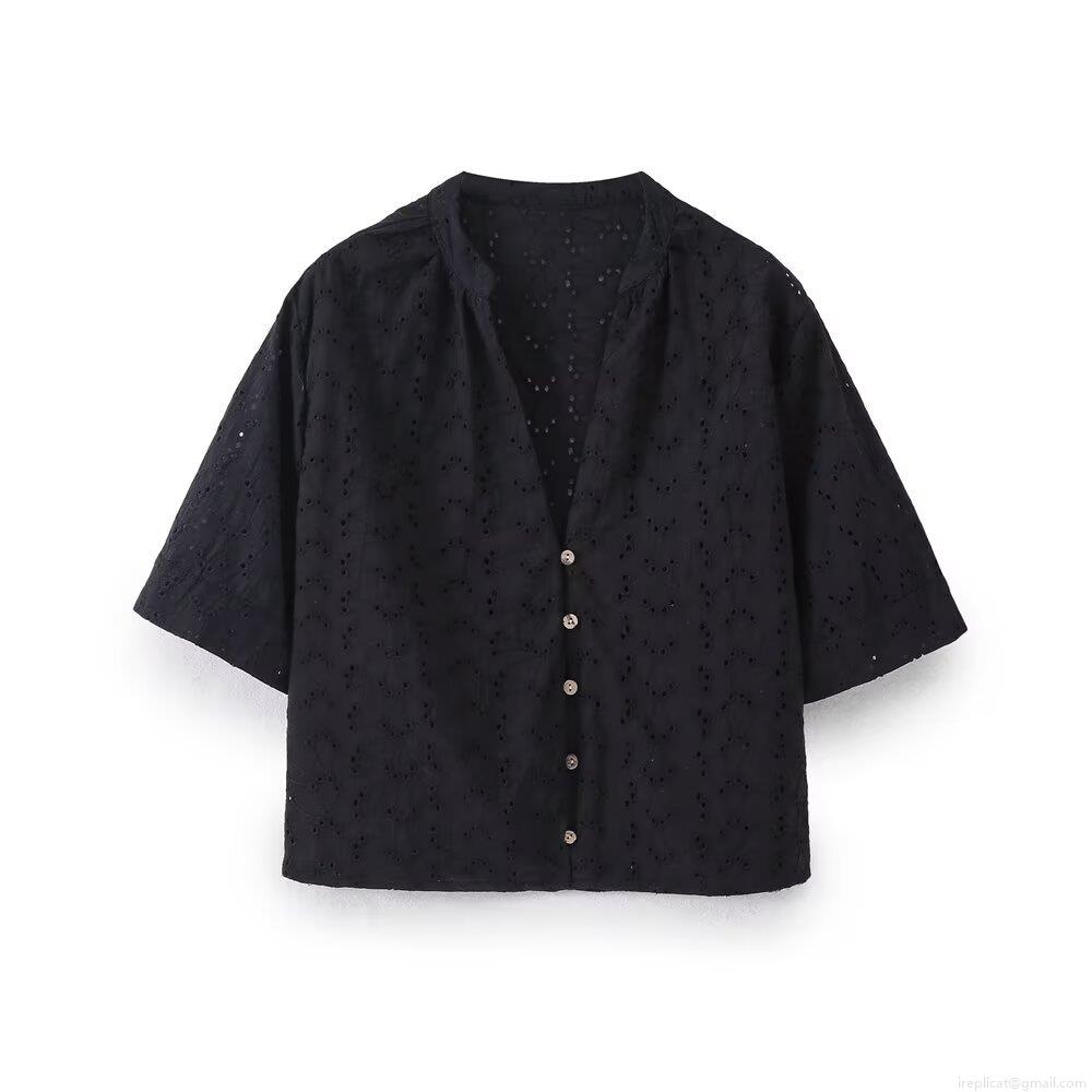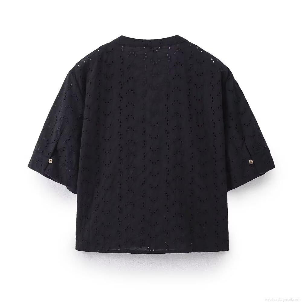Embroidery, Hollow Out, Flowers, Single-breasted, Openwork Embroidery, Wooden Buttons, Eyelet Texture