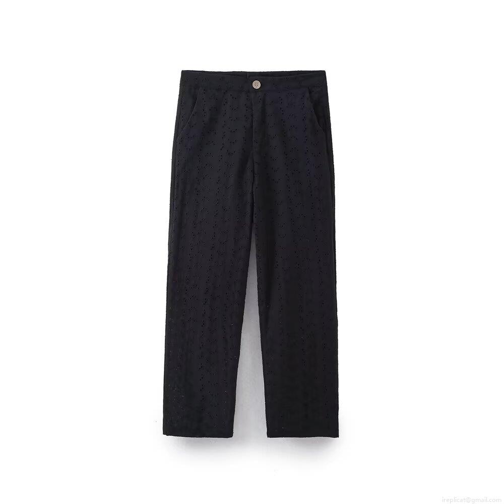 • Women's 2 Piece Set Eyelet Embroidery Cotton Blend V-Neck Short Sleeve Button Down Shirt And Straight Leg Pants Casual Stylish Summer Beach Vacation Outfit Black