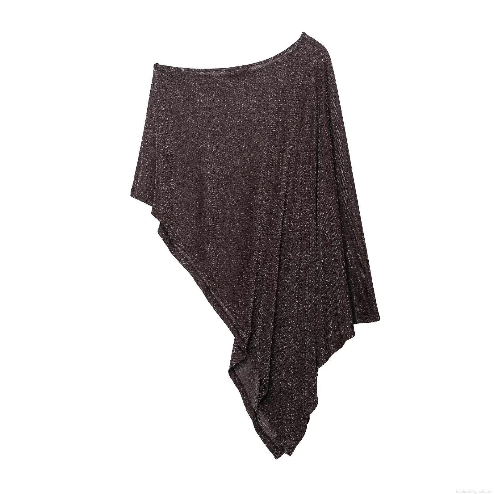 Women's 2 Piece Set Metallic Glitter Asymmetric One Shoulder Poncho Top Or Wide Leg Pants Casual Streetwear Party Club Outfits