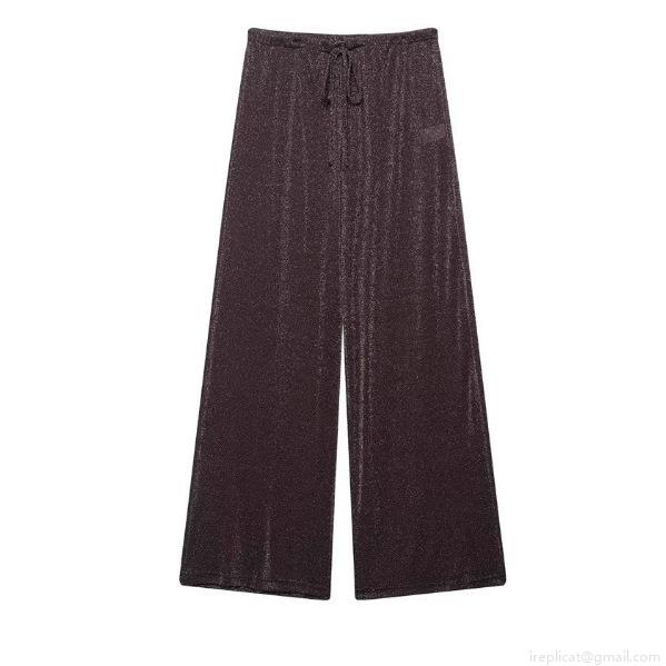 Drawstring, Glossy Silk, Fine Shimmer, Elastic Waistband, Sloping Shoulders, Wide-leg, Metallic Texture, Asymmetrical Cut