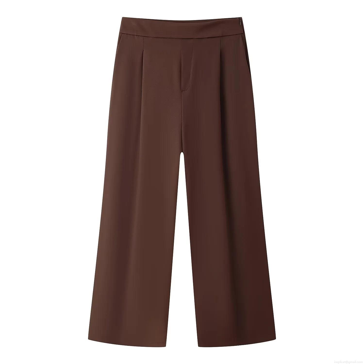 • Women's 2 Piece Set Polyester Off-Shoulder V-Neck Corset Top And High Waist Wide Leg Pants Coffee Brown Elegant Streetwear Outfits For Women