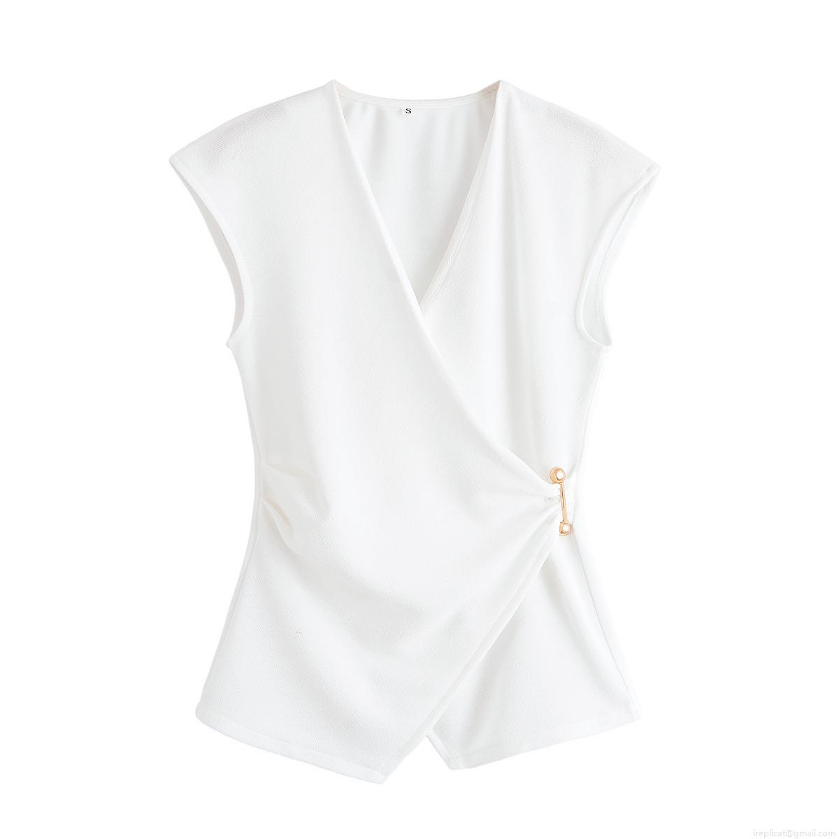 • Women's 2 Piece Set Sleeveless V Neck Wrap Top And High Waisted Wide Leg Pants Suit Summer Solid Color Crepe Texture Casual Streetwear Outfits With Decorative Buckle