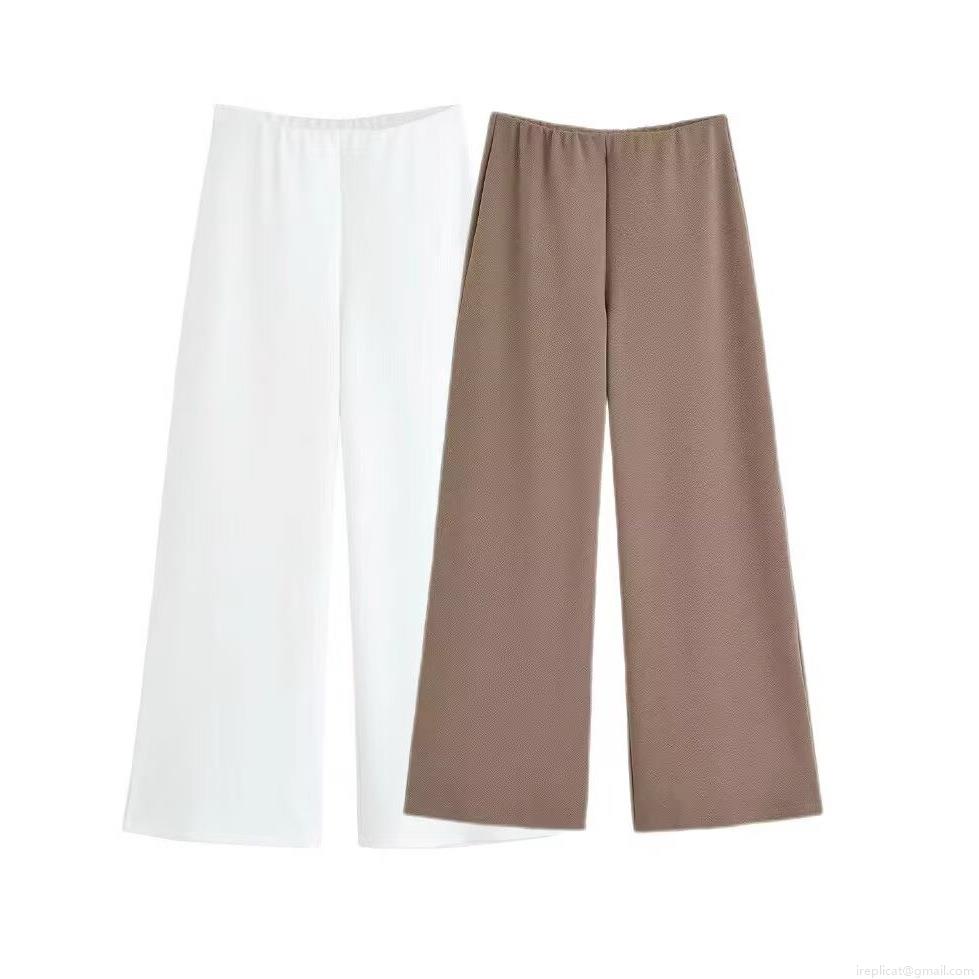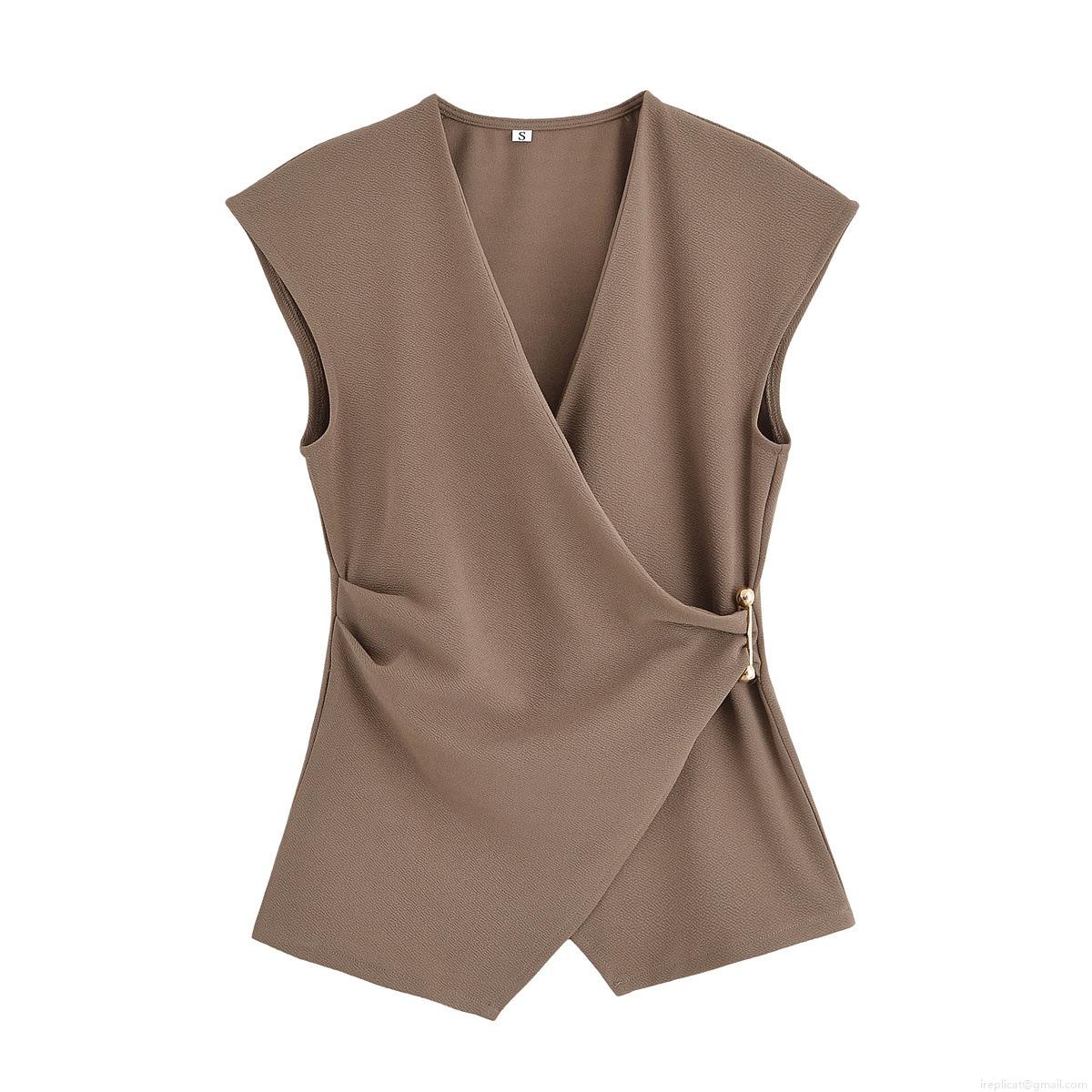 Solid Color, V-neck, Metal Decorative Buckle, Wide-leg, High-waisted, Wrinkled Texture, Cross-wrap Design