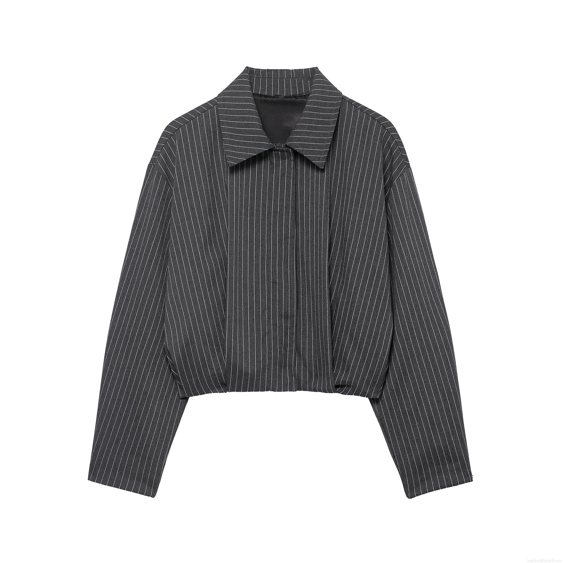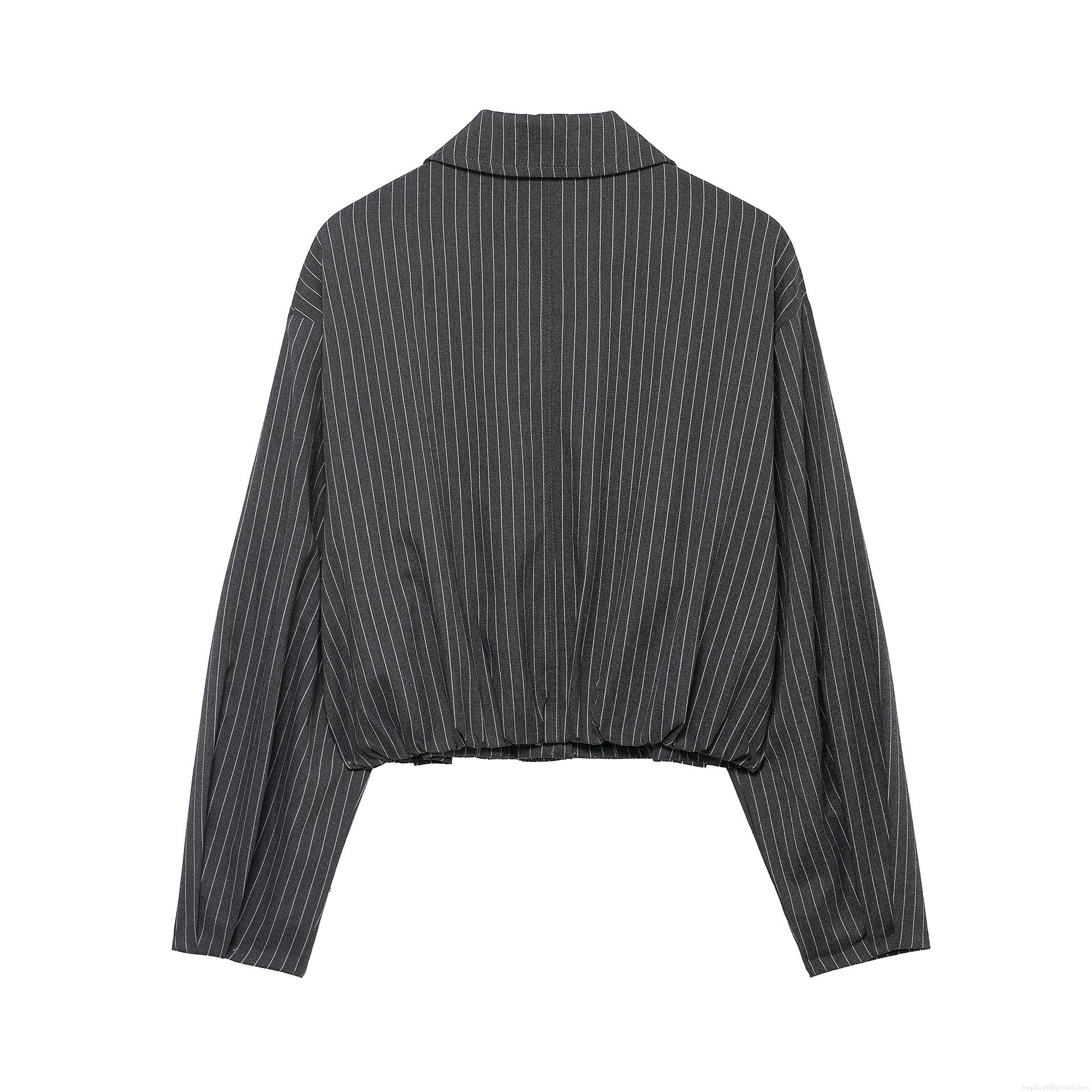 • Women's 2 Piece Stripe Outfits Long Sleeve Short Jacket Coat And High Waist Wide Leg Pants Set 100% Polyester Casual Suit Set Streetwear For Women