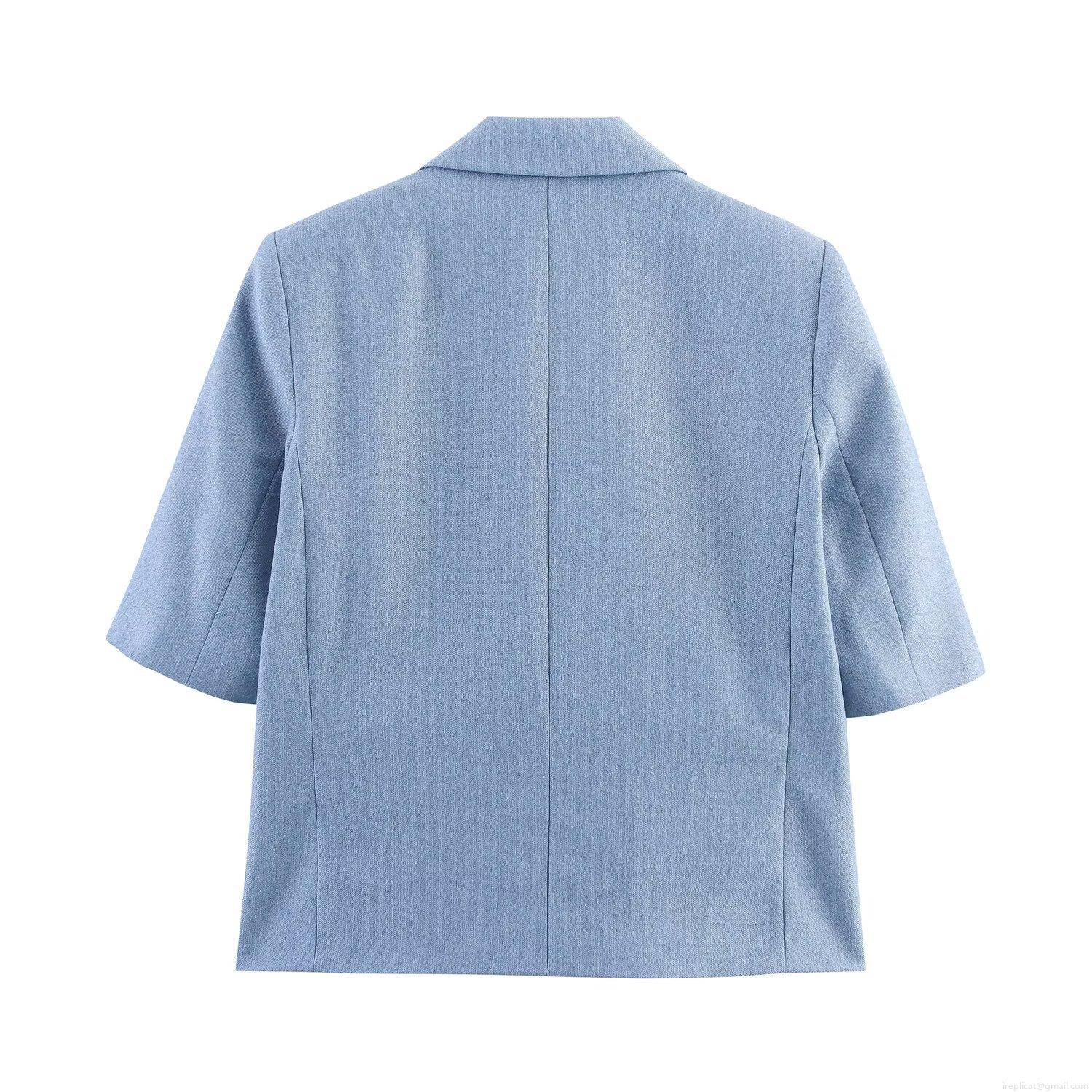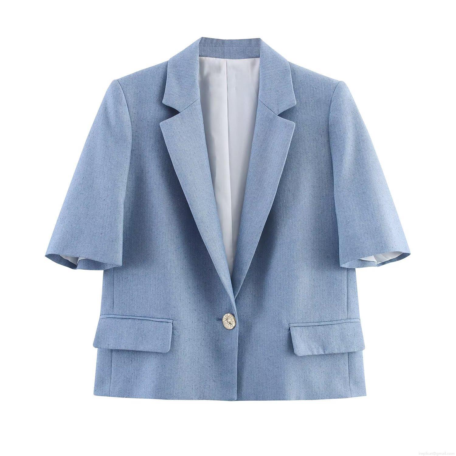 Solid Color, Metal Buttons, Flap Pocket, Single Button, High-waisted Design