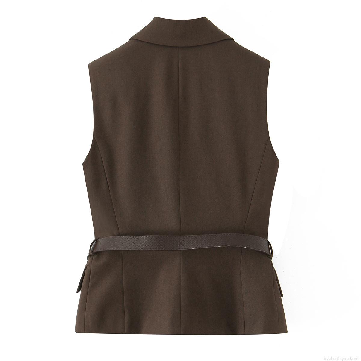 • Women's 2 Piece Suit Set Double Breasted Vest With Belt And High Waist Straight Leg Pants Autumn Fashion Casual Woven Polyester Trousers Outfit