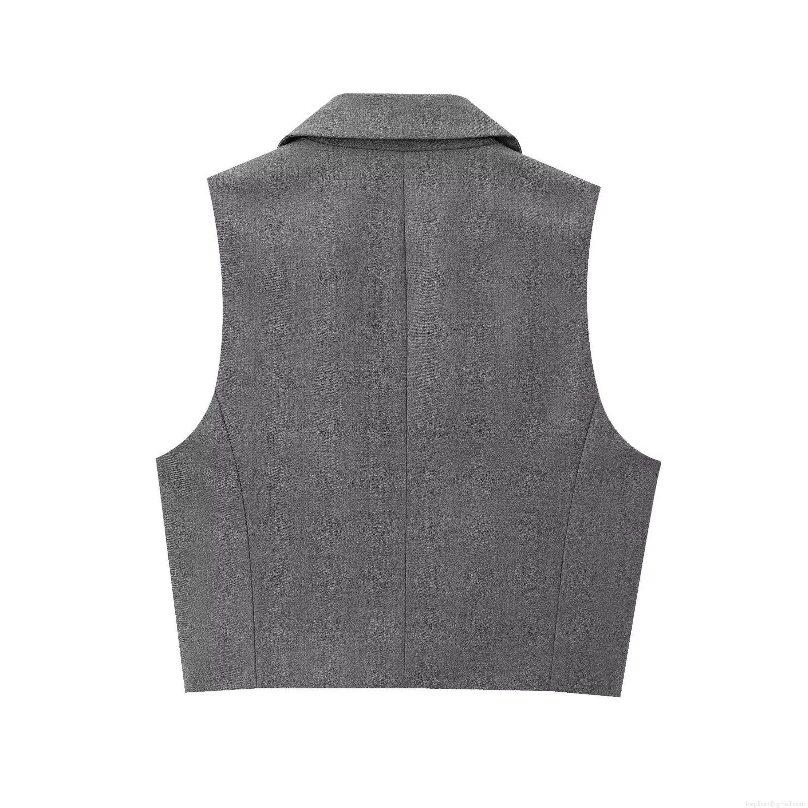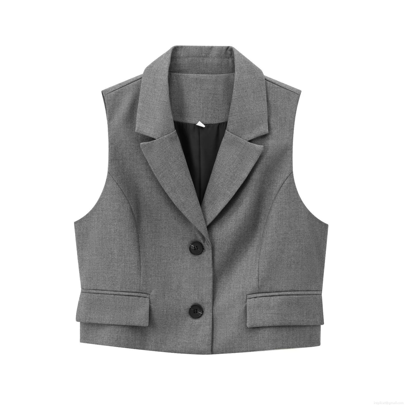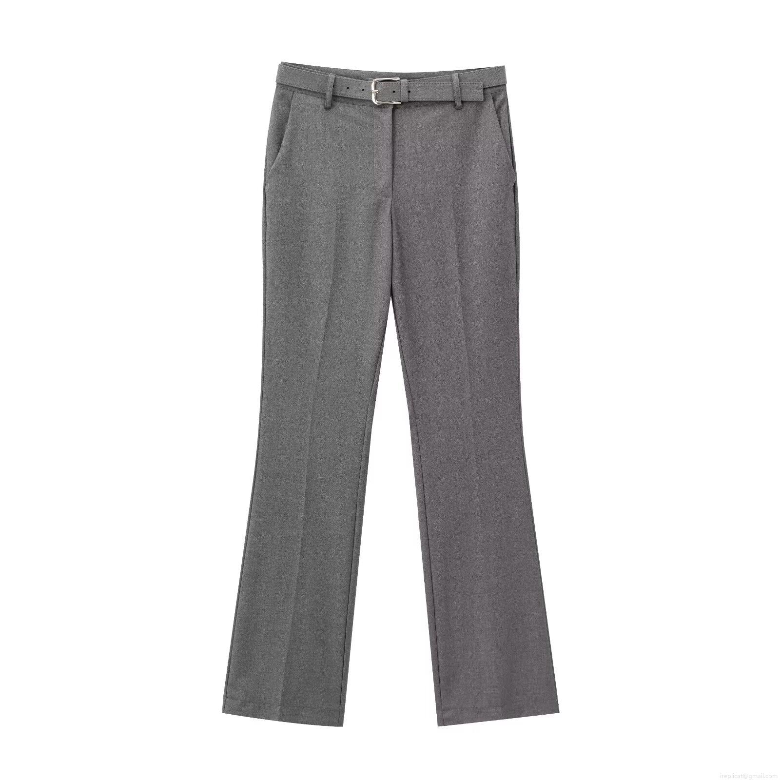 • Women's 2 Piece Suit Set Solid Grey Sleeveless Notched Lapel Blazer Vest Top And Straight Leg Trousers With Belt Office Business Casual Streetwear Outfit