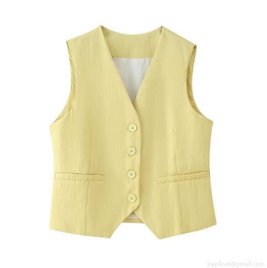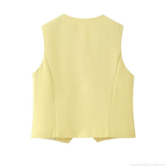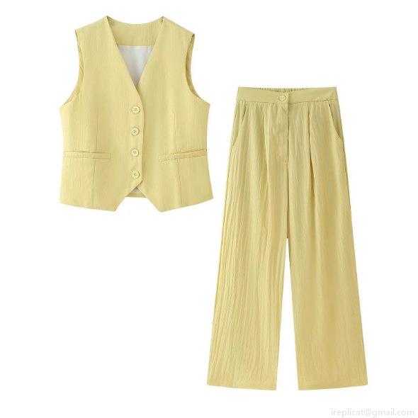• Women's 2 Piece Summer Suit V-Neck Single-Breasted Sleeveless Vest and Wide-Leg Pants Set Polyester Linen-Like Texture Casual Office Commute Solid Color Yellow Outfit
