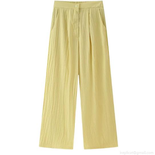 Solid Color, V-neck, Single-breasted, Wide-leg, Wrinkled Texture