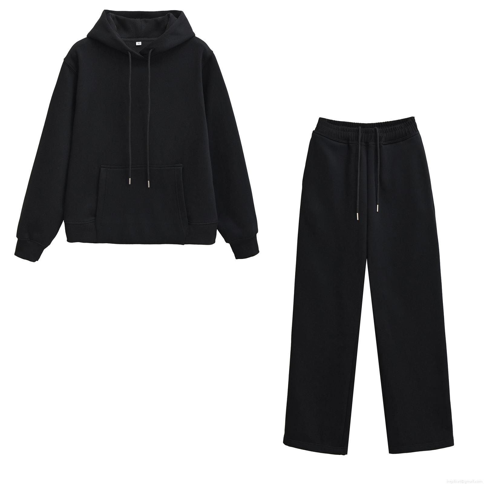 • Women's 2 Piece Tracksuit Cotton Blend Fleece Hooded Sweatshirt And Wide Leg Pants Set Solid Color Casual Streetwear Autumn Winter Loungewear Outfit