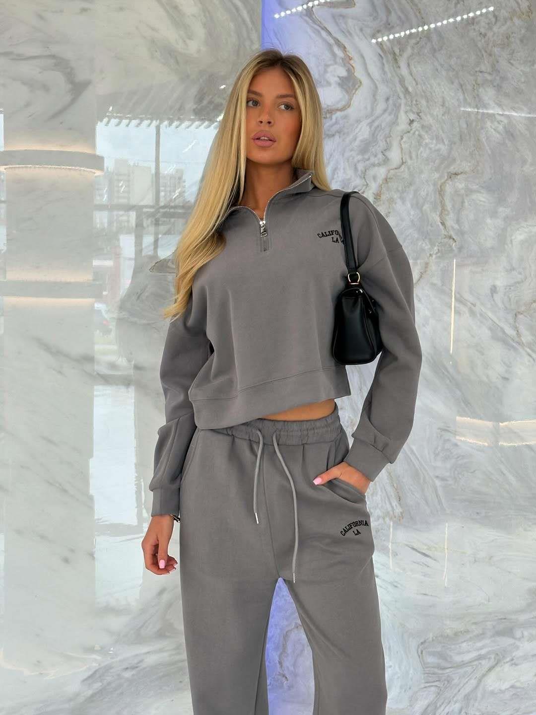 • Women's 2 Piece Tracksuit Set 100% Cotton Long Sleeve Half Zip Sweatshirt And High Waist Straight Leg Pants American Retro Sporty Outfit