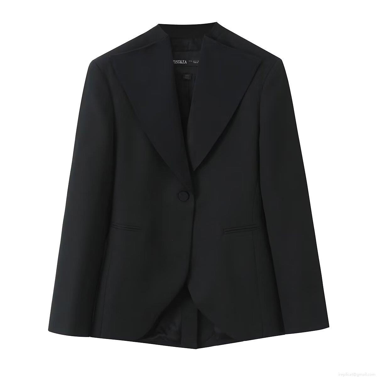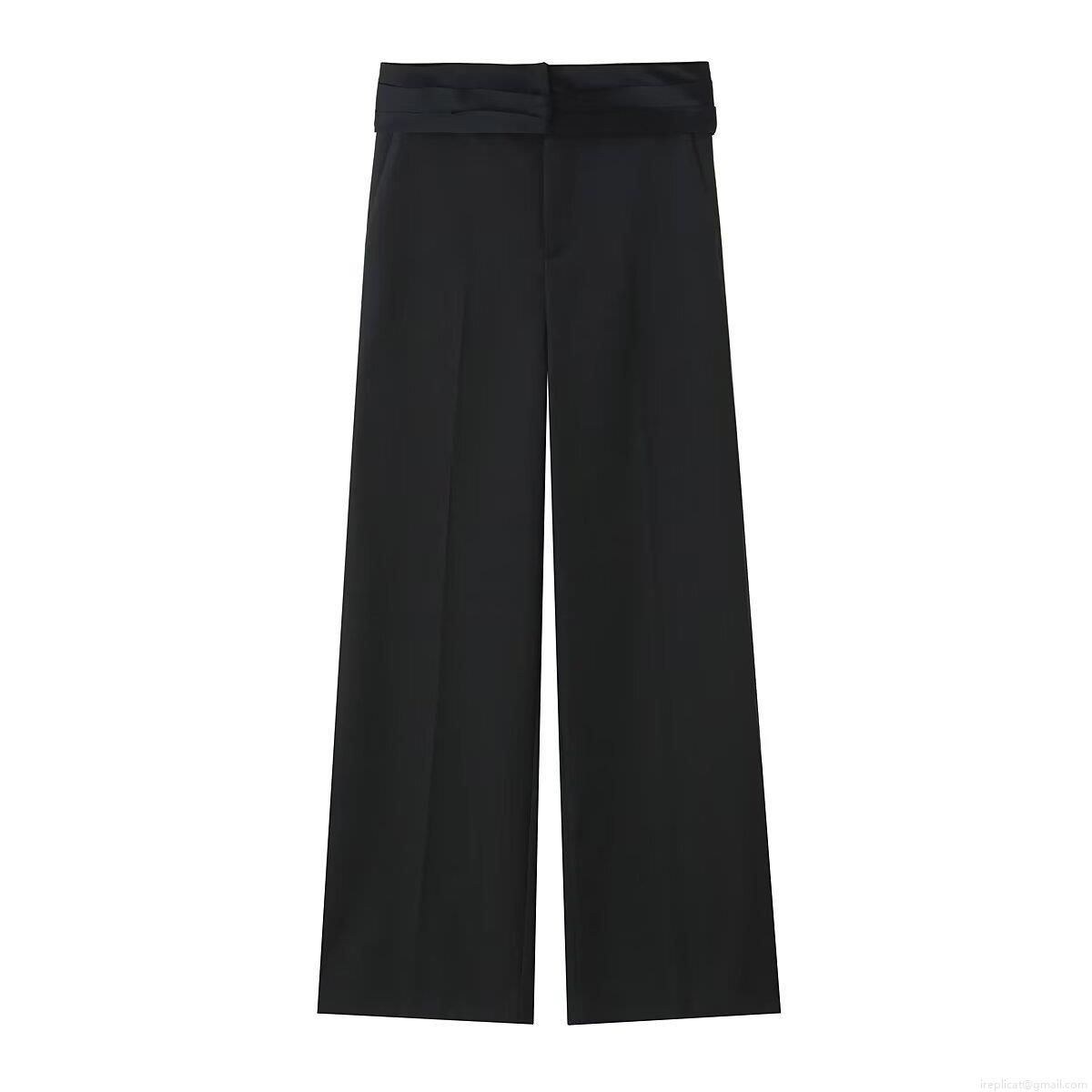 Solid Color, Single-breasted, Wide-leg Cut, Color-blocked Waist Belt, Irregular Curved Hem
