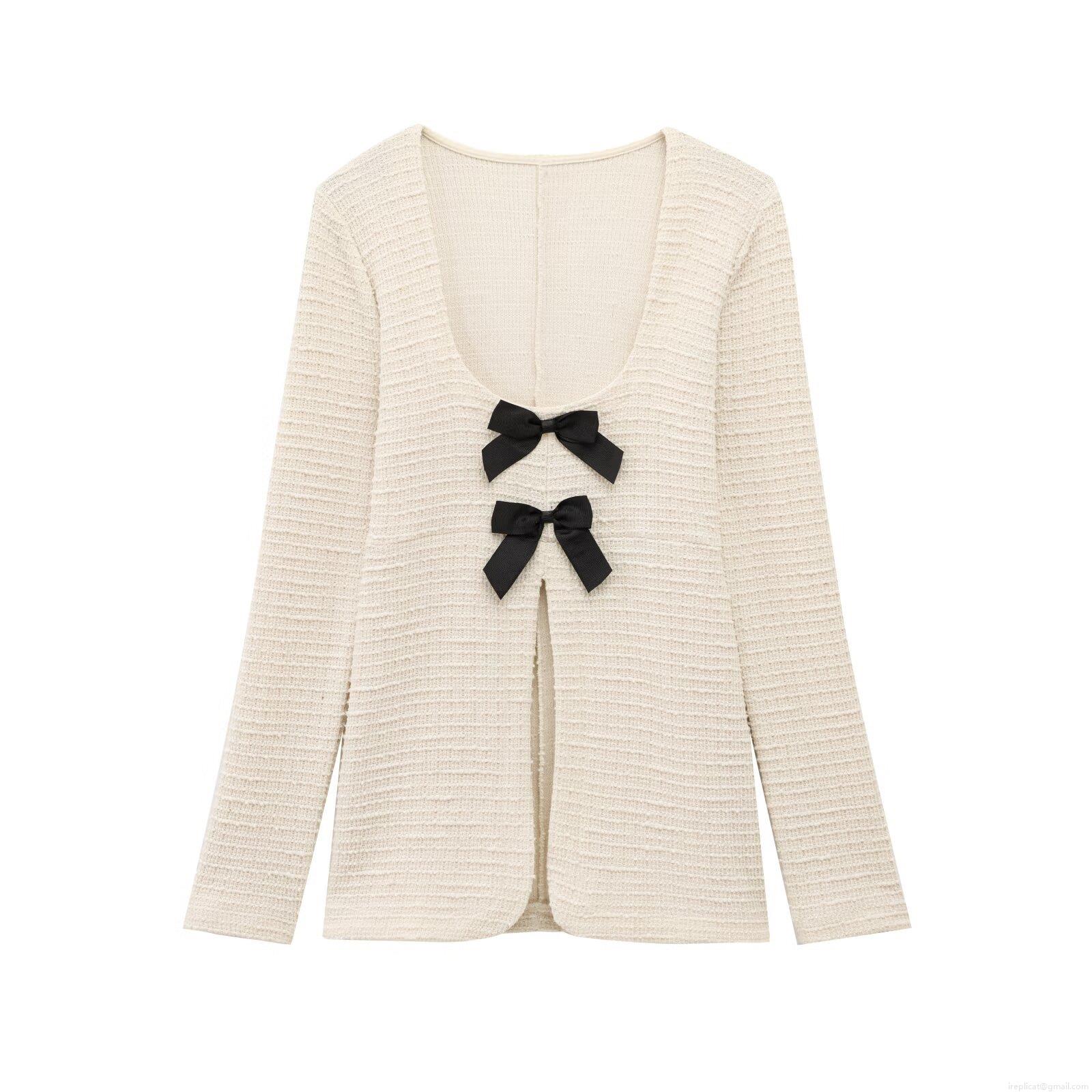 Solid Color, Color Blocking, Bow Decoration, Ribbed Knit, Rough Texture