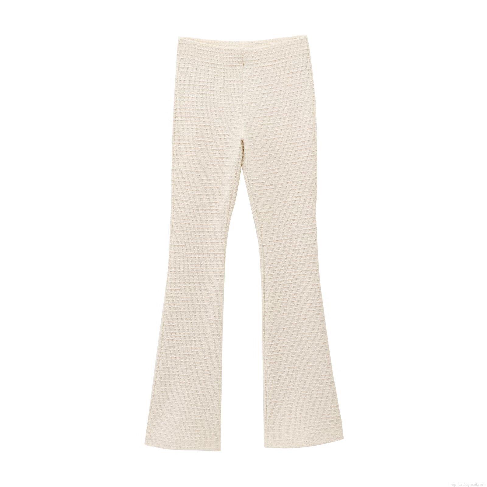 Women's 2-Piece Cotton Knit Lounge Set Long Sleeve U-Neck Top With Black Bows Ribbed Flare Pants Chic Western Streetwear Co-ords