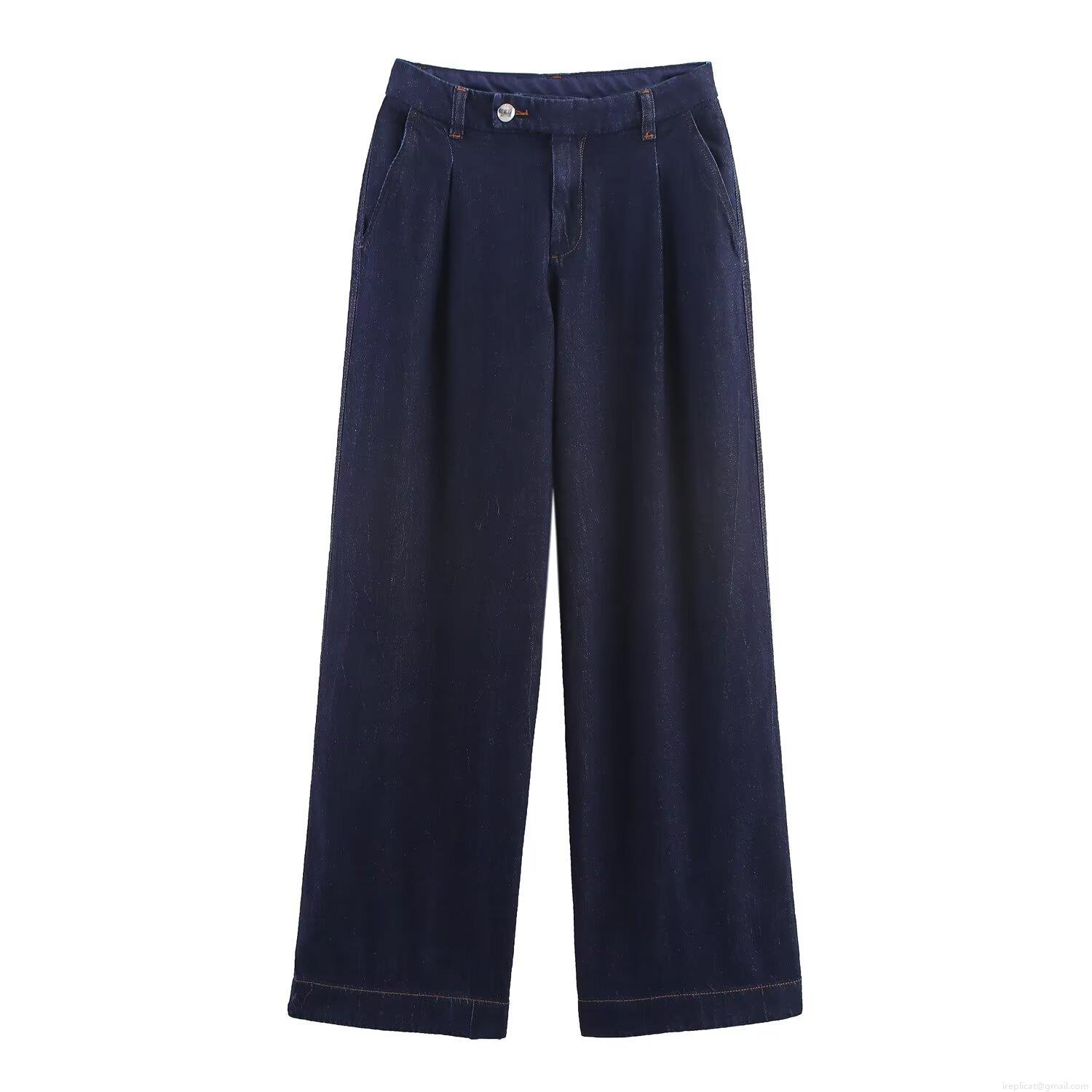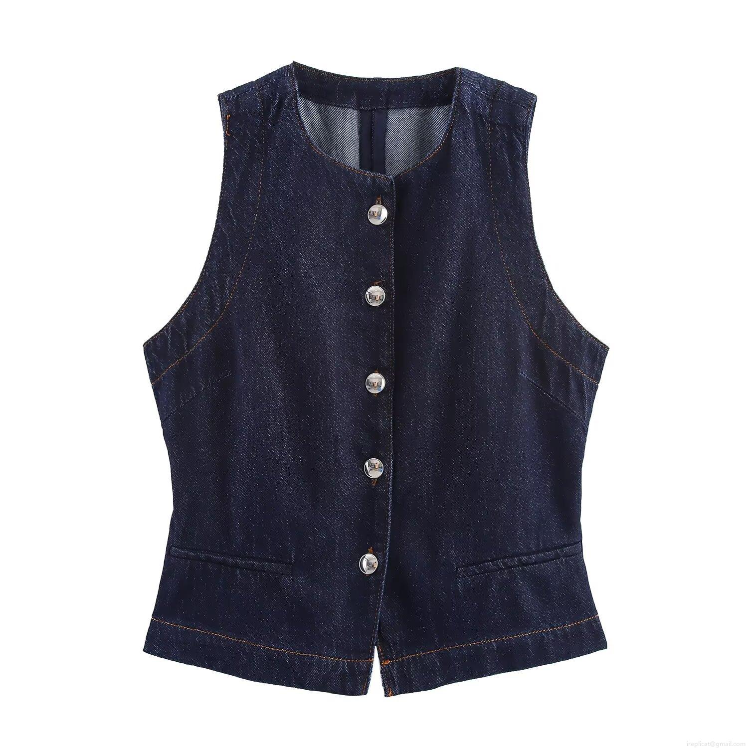 • Women's 2-Piece Denim Set Navy Blue Sleeveless Button Up Vest And High Waist Wide Leg Pants Casual Streetwear Polyester Blend Outfit