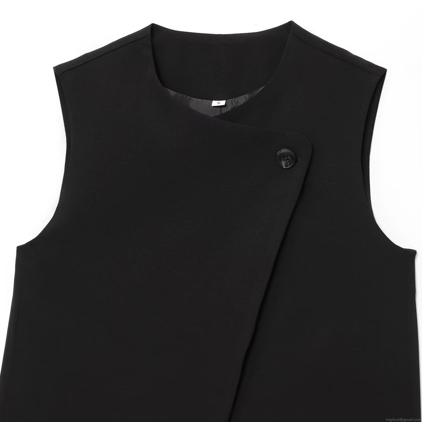 Women's 2-Piece Fashion Outfit Set Asymmetrical Single Button Sleeveless Vest Top And High Waist Straight Leg Pants Minimalist Casual Office Suit Black