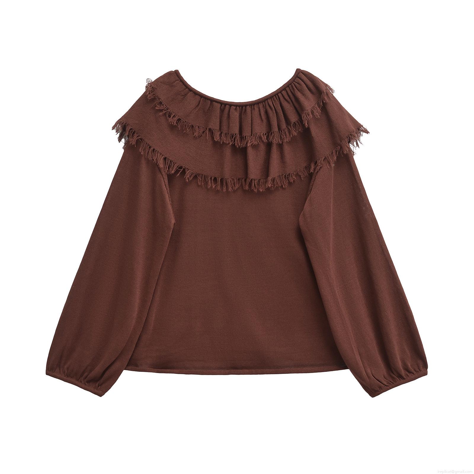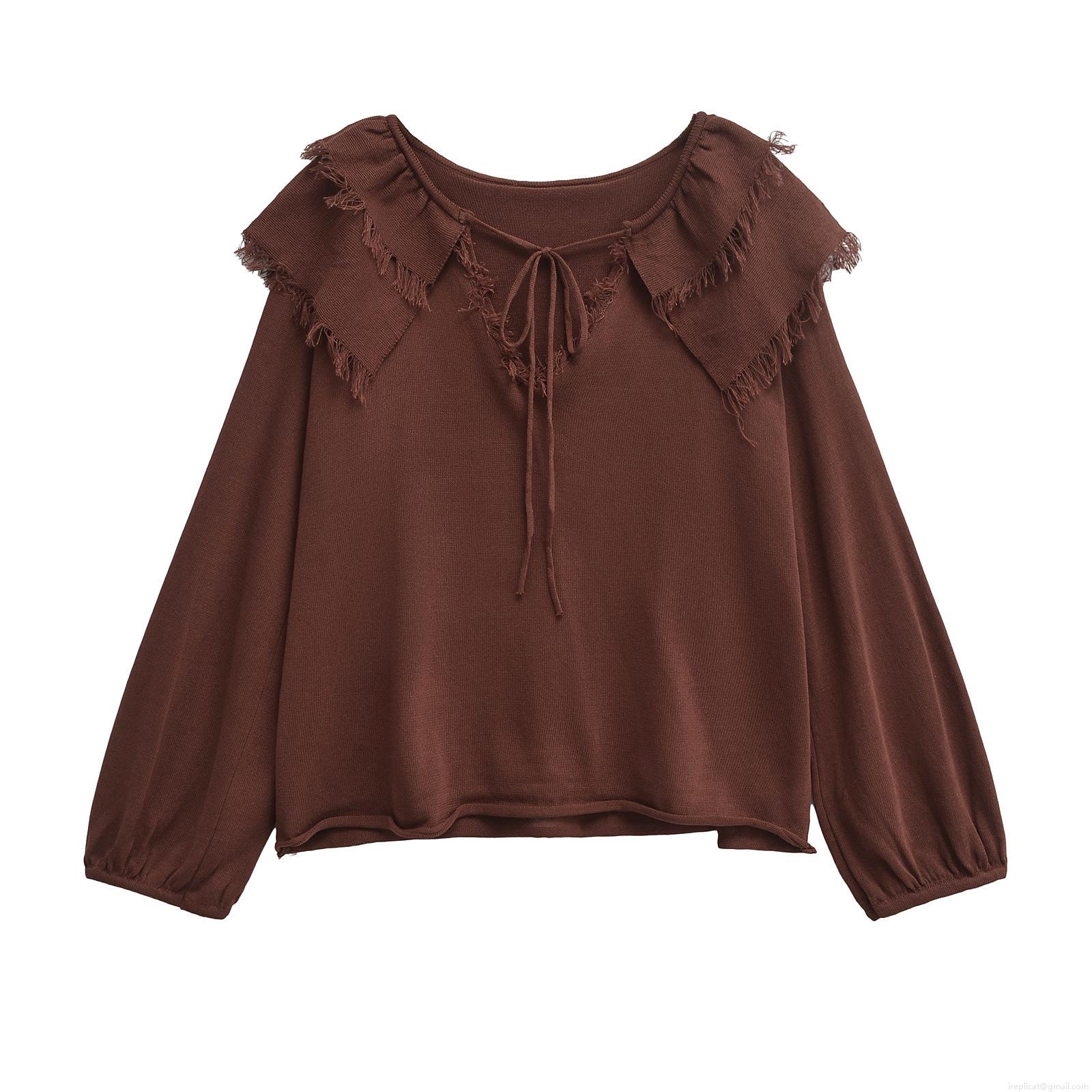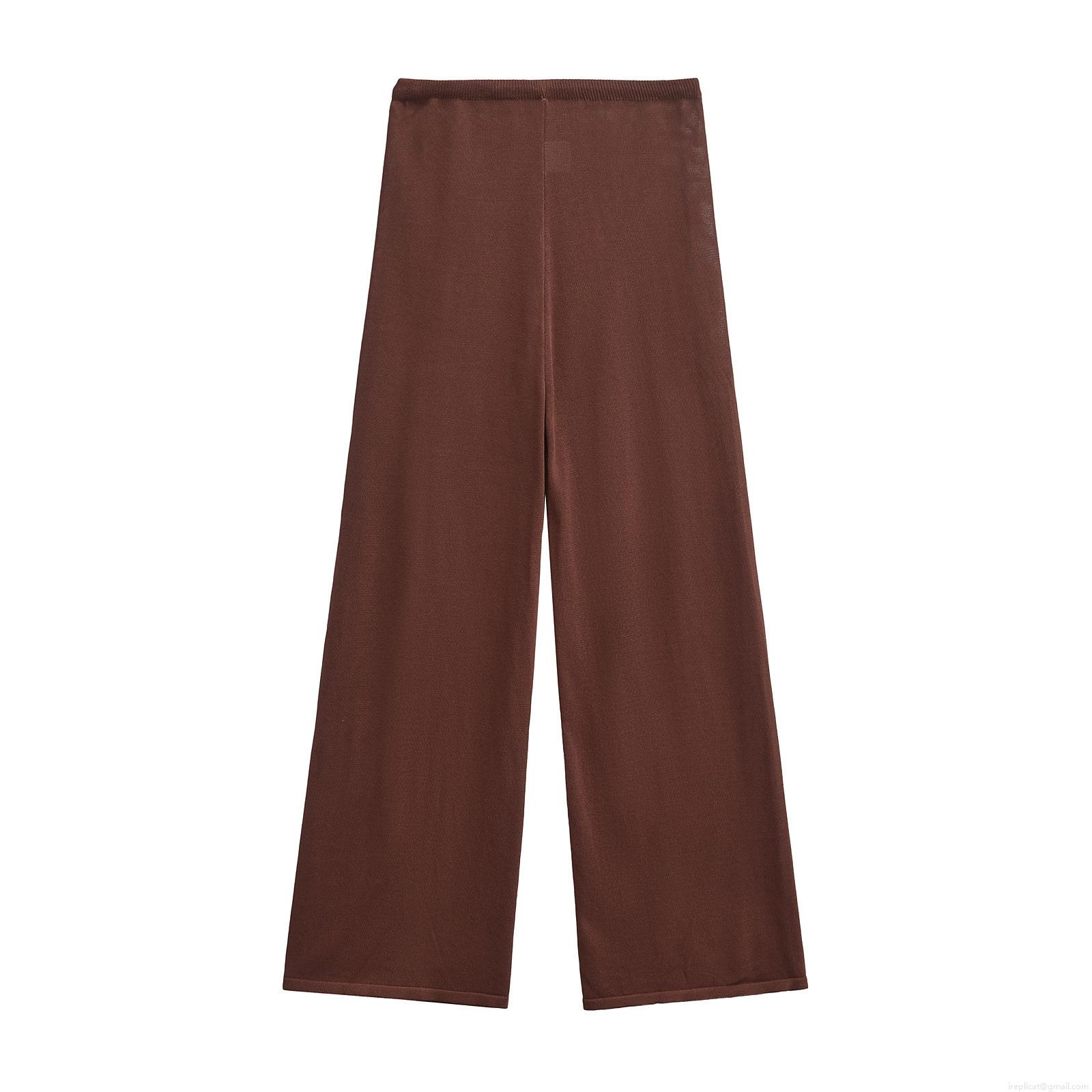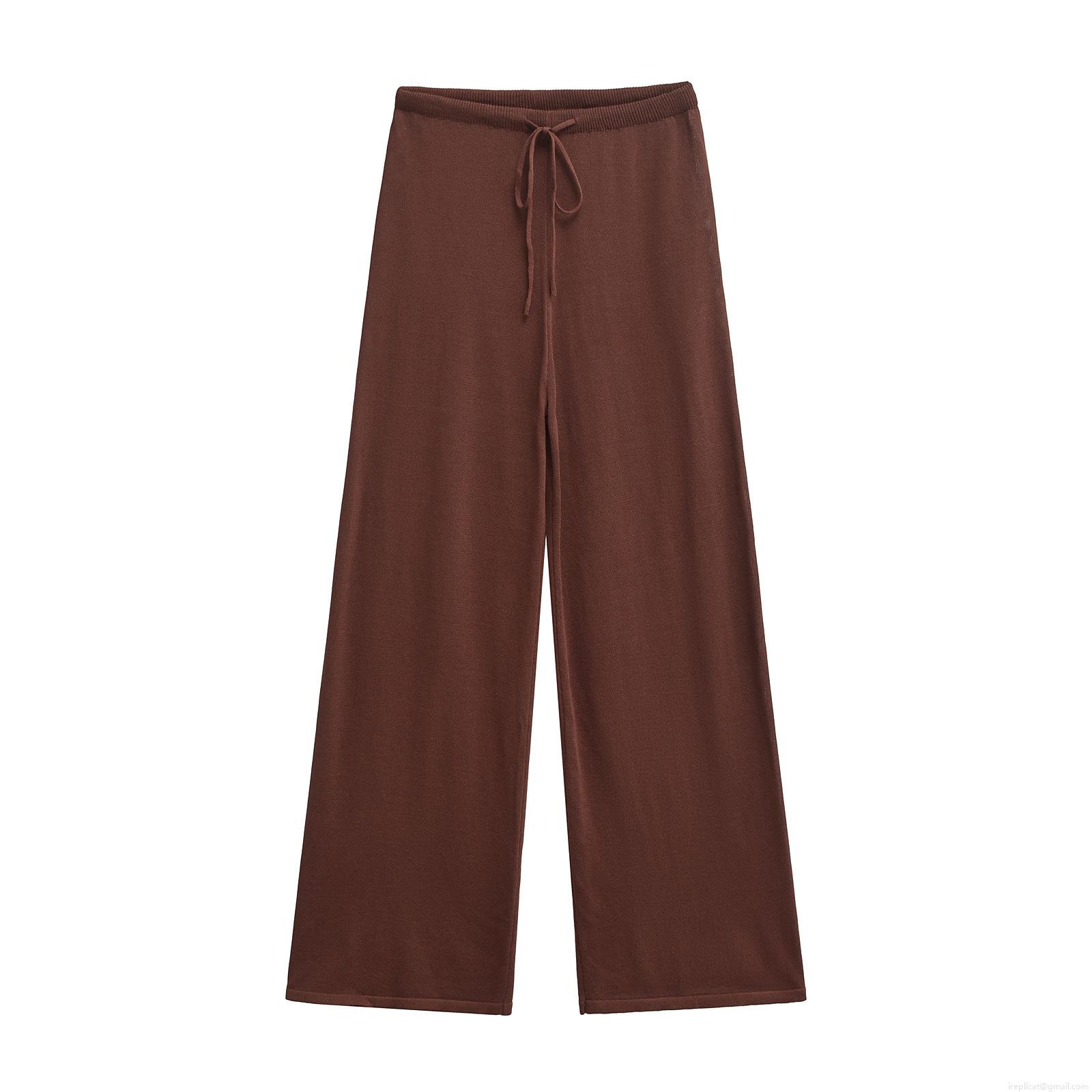 • Women's 2-Piece Knit Pants Set Long Sleeve Ruffle Tie-Up Top And Wide Leg Trousers Polyester Solid Color Autumn Casual Streetwear Co-ord Set