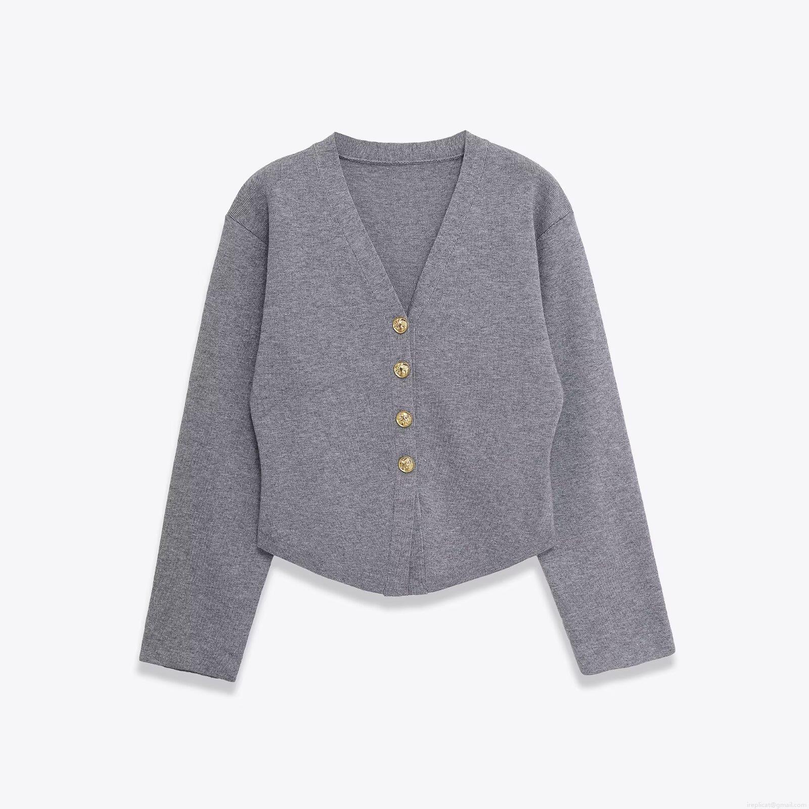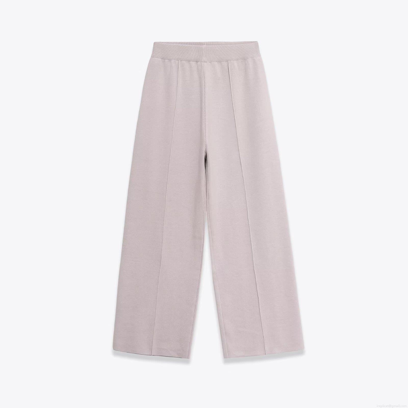 Solid Color, V-neck, Wide-leg, High-waisted, Knitted Texture, Gold Buttons