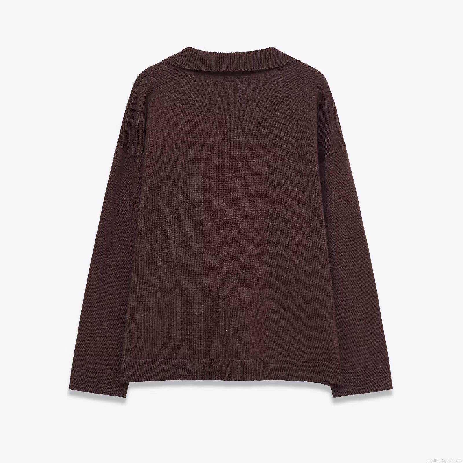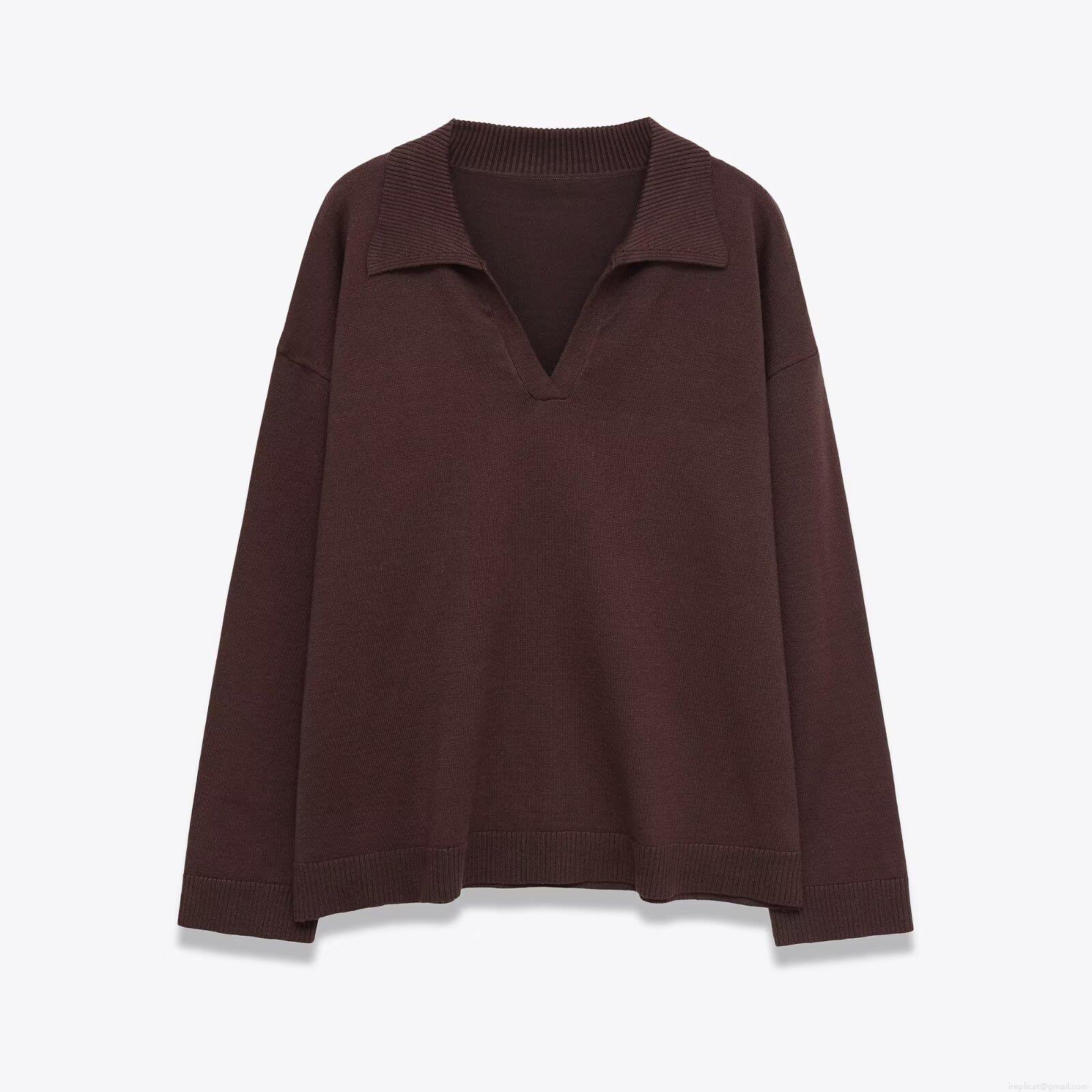 • Women's 2-Piece Knit Set Long Sleeve Polo V-Neck Pullover Top And High Waist Wide Leg Pants Casual Solid Color Outfits For Autumn Winter