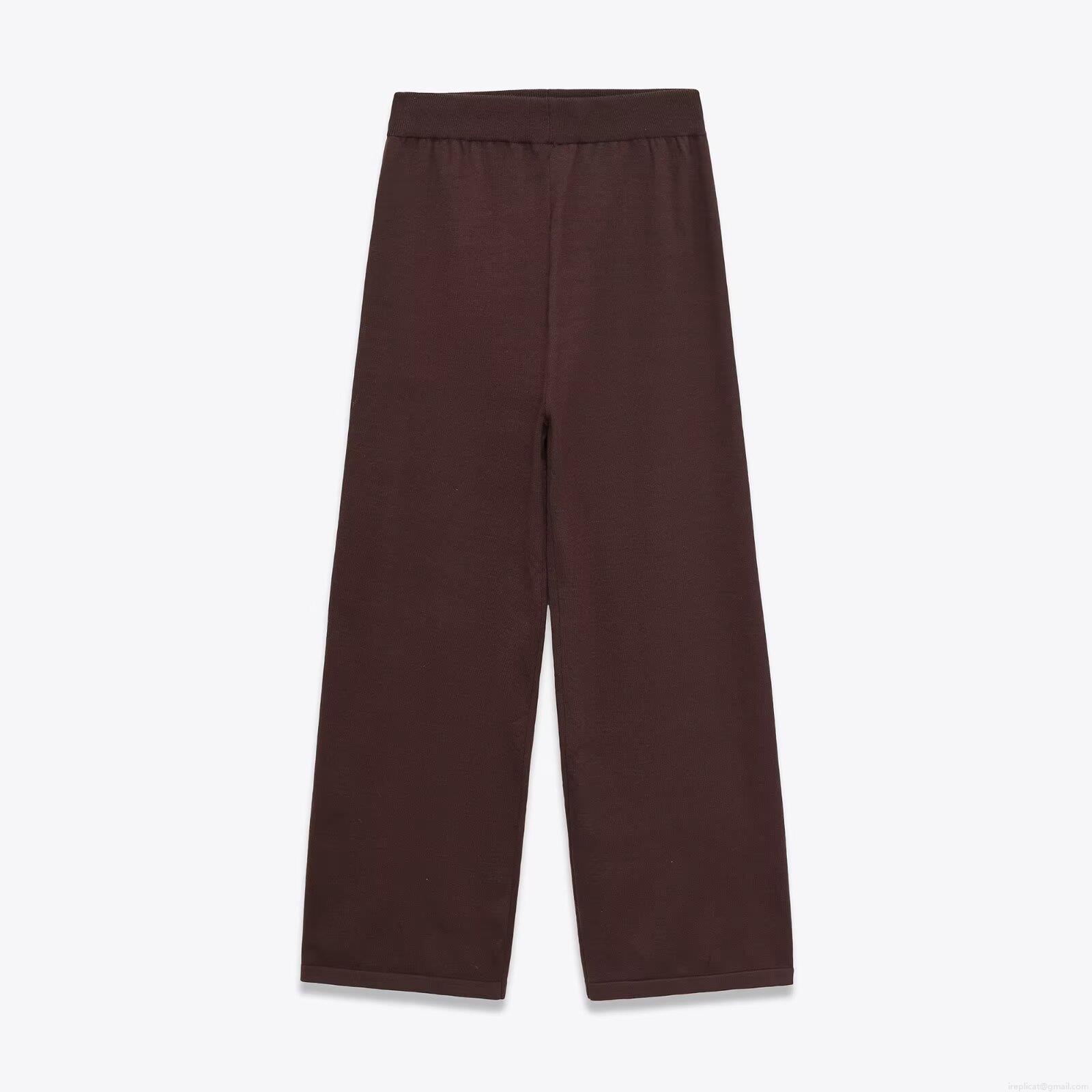 Solid Color, Knitting, Ribbed, Lapel, Wide-leg