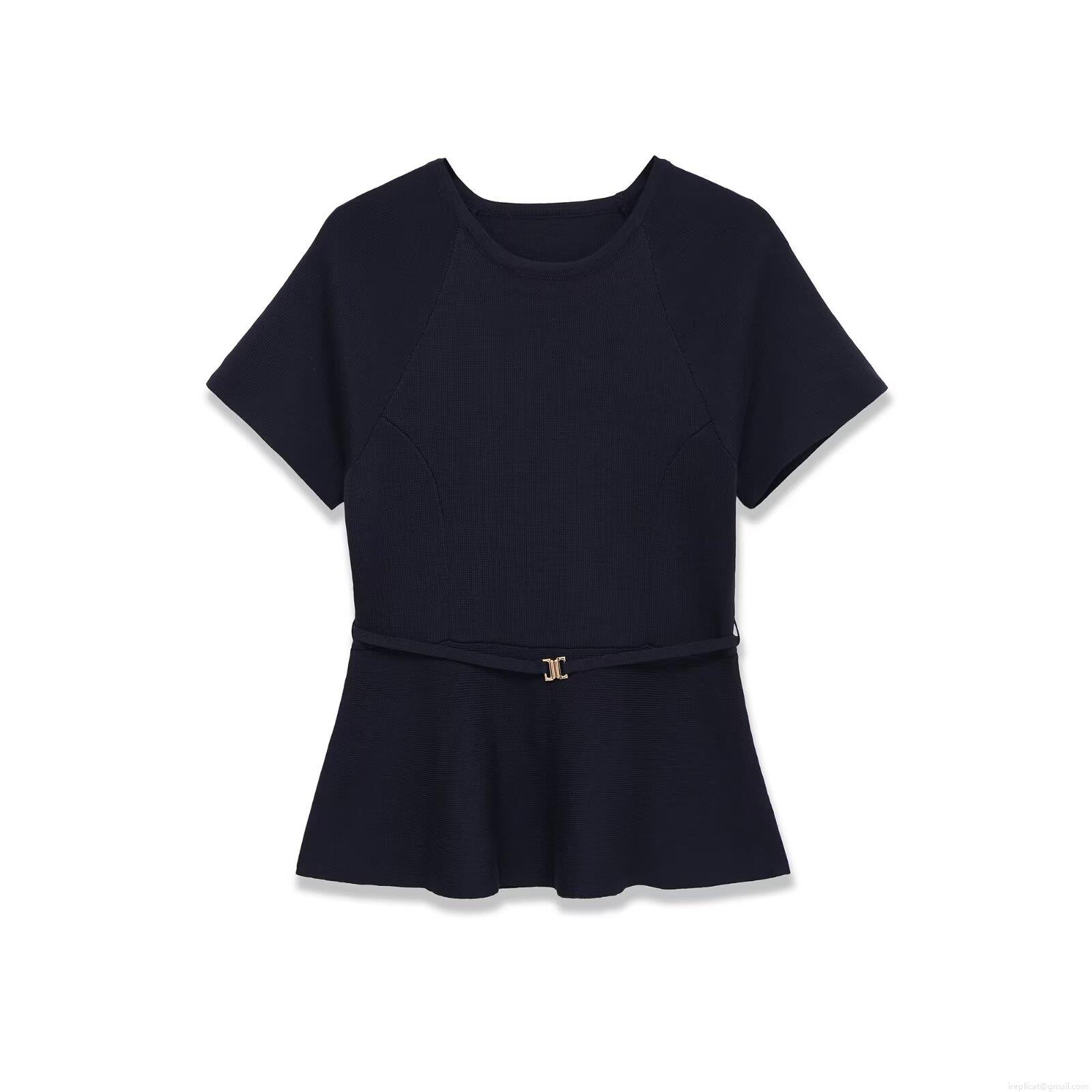 Solid Color, Waist-cinching Design, Ribbed Knit, Metal Buckle, Ribbed Strip, Ruffled Hem