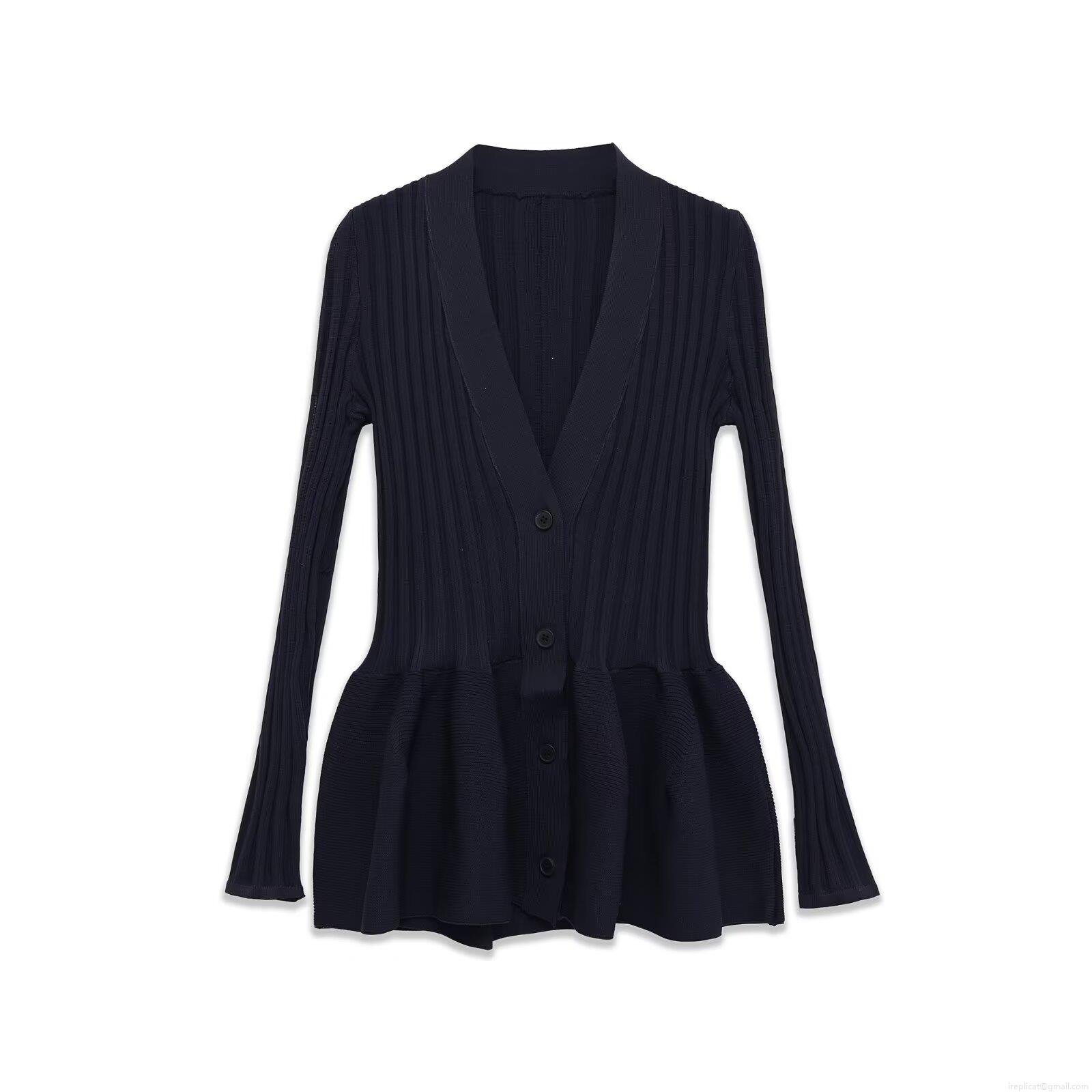 • Women's 2-Piece Knitted Co-ord Set V-Neck Button Peplum Hem Long Sleeve Cardigan Top and Flare Leggings Pants Navy Blue Ribbed Knit Outfits For Daily Streetwear