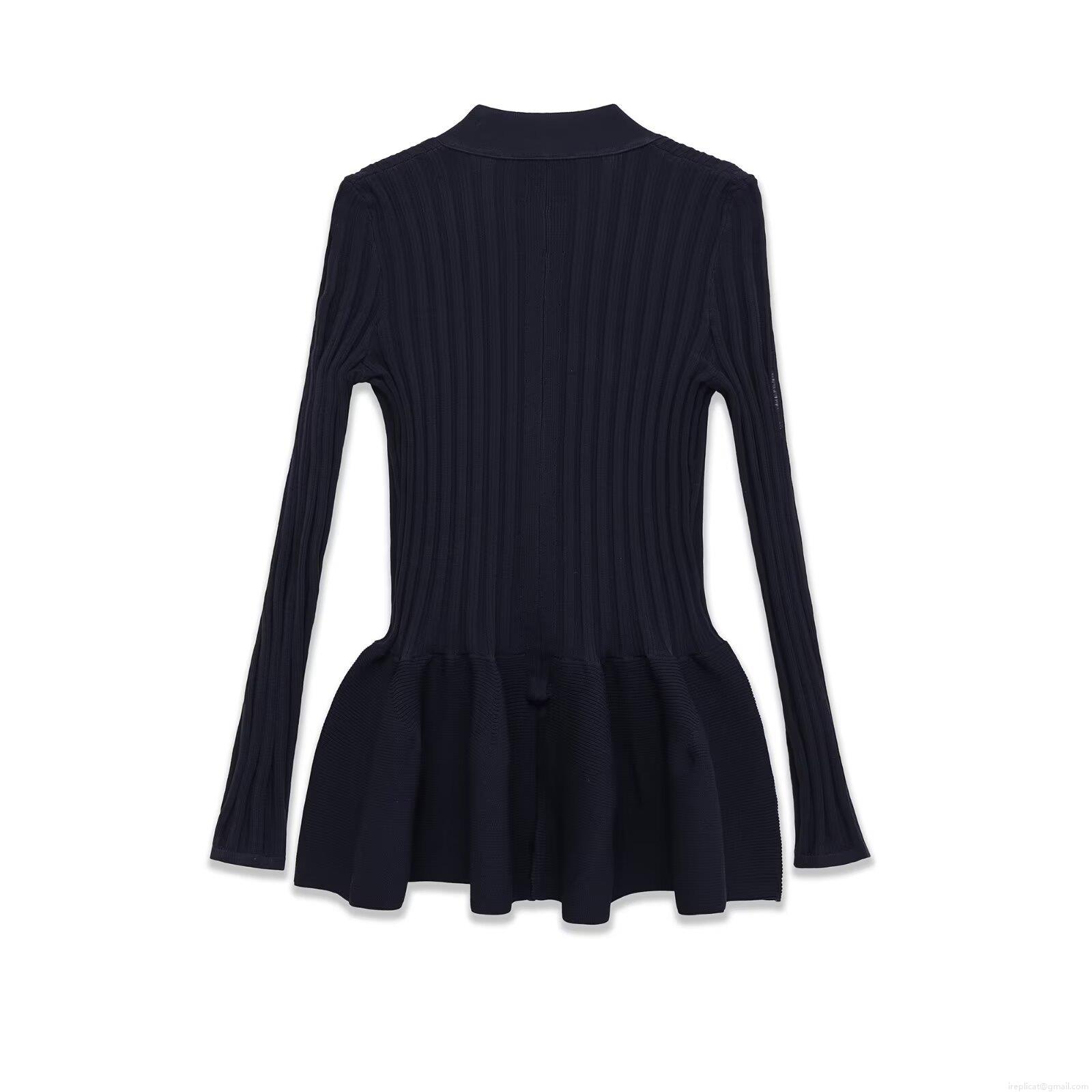 Women's 2-Piece Knitted Co-ord Set V-Neck Button Peplum Hem Long Sleeve Cardigan Top and Flare Leggings Pants Navy Blue Ribbed Knit Outfits For Daily Streetwear