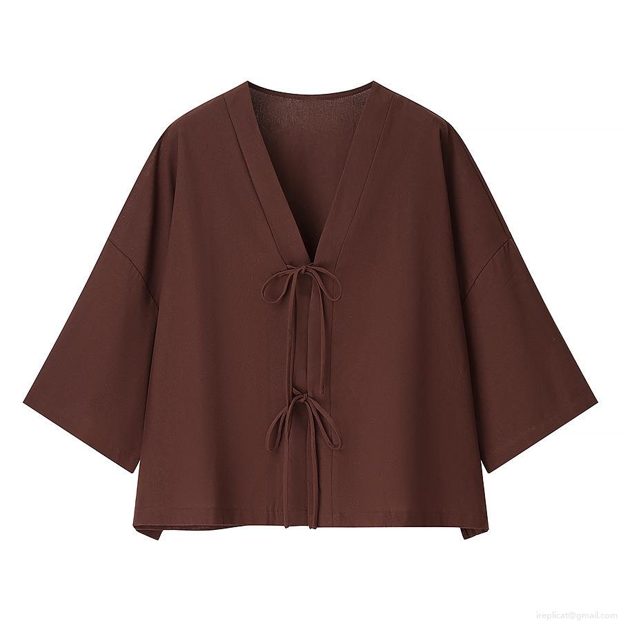 • Women's 2-Piece Lounge Set Casual V-Neck Tie-Front Top High Waist Pleated Wide Leg Pants Autumn Loose Streetwear Outfit Polyester Brown