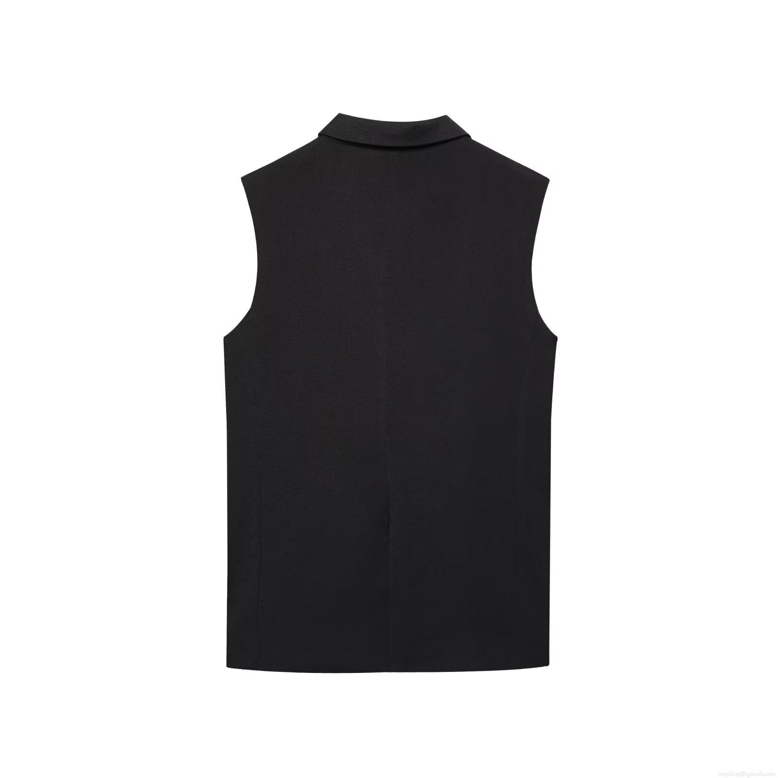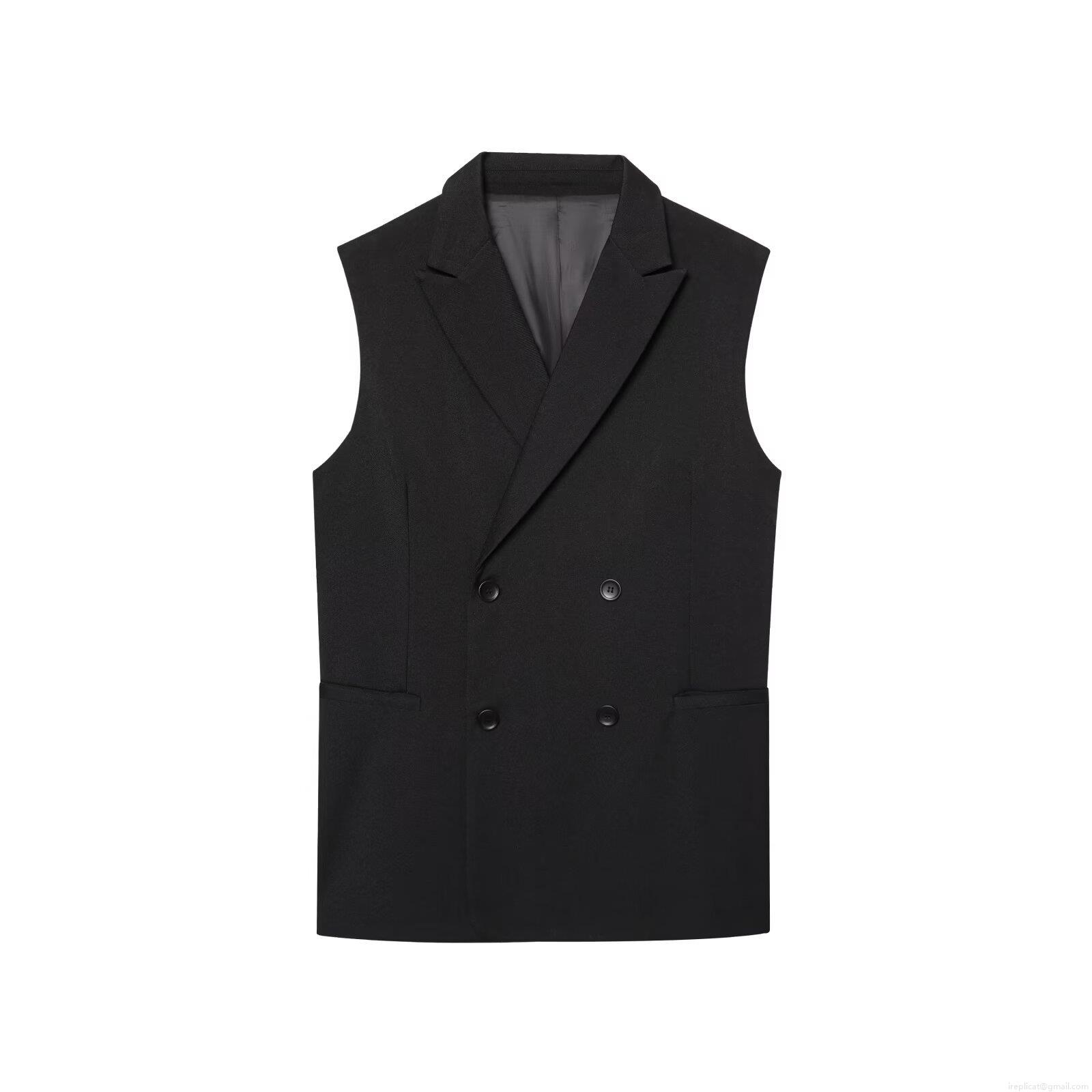 • Women's 2-Piece Office Lady Set Double Breasted Sleeveless Vest and High Waist Wide Leg Pants Solid Color Commuter Suits