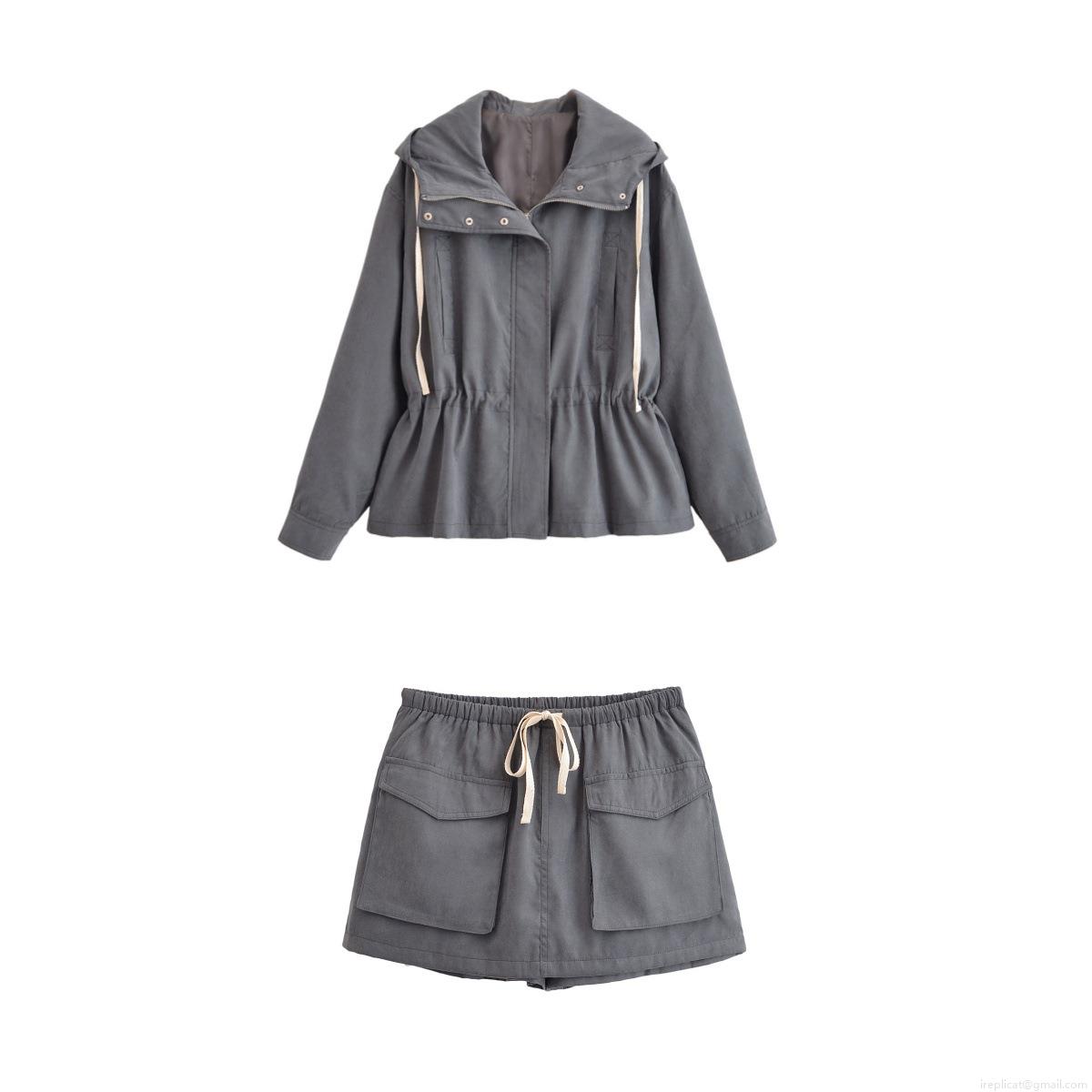 Women's 2-Piece Outfit Set 100% Polyester Hooded Drawstring Windbreaker Jacket and Cargo Skort Pants With Pockets Streetwear Autumn Casual Style