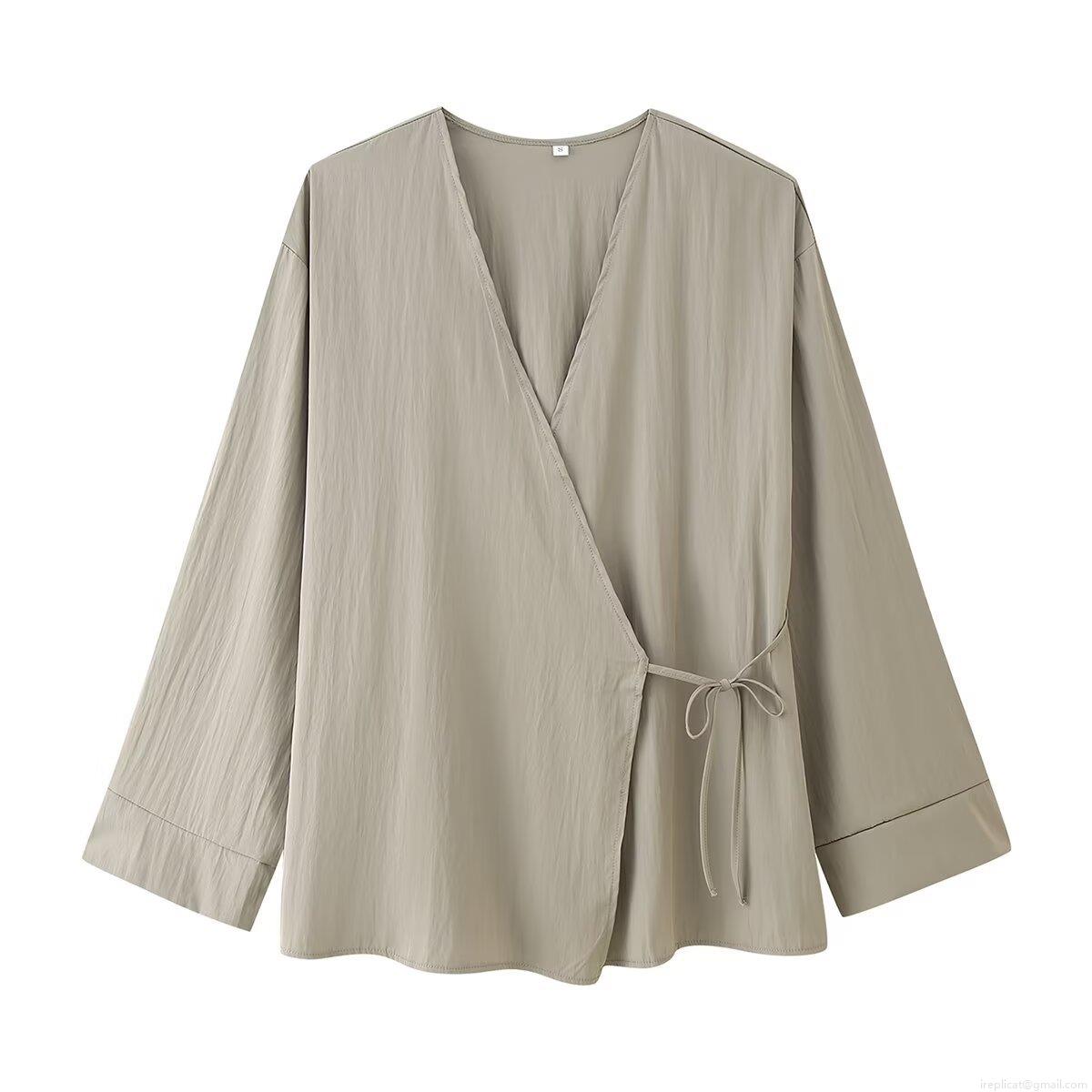• Women's 2-Piece Outfit Set Kimono Style V-Neck Tie Front Long Sleeve Top and Wide Leg Pants Casual Streetwear Plisse Textured Lounge Set For Women Summer Tracksuit