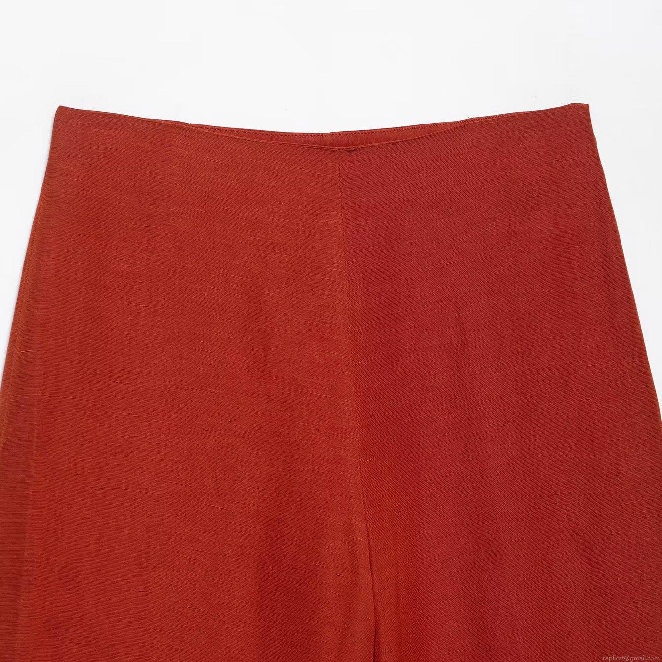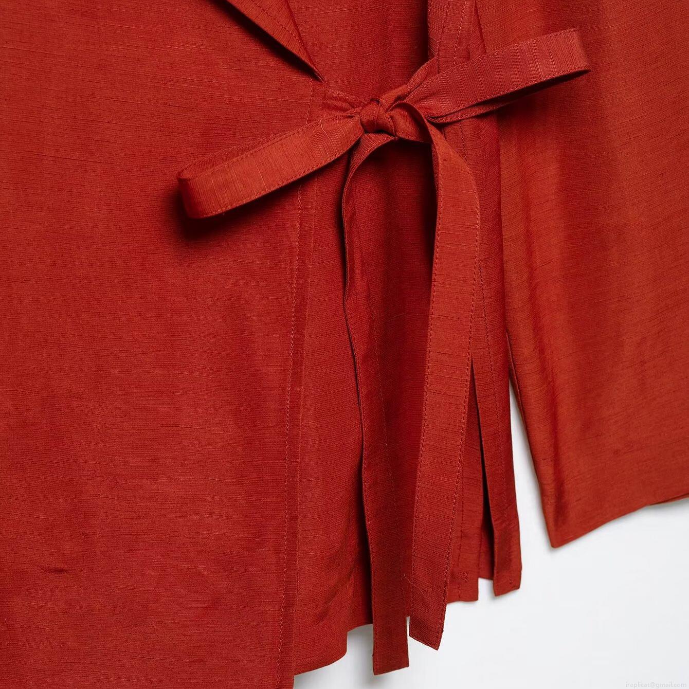 • Women's 2-Piece Set 100% Polyester Linen Texture Kimono Tie-Front Long Sleeve Shirt And Wide Leg Pants Set Terracotta Casual Loose Summer Outfit For Women