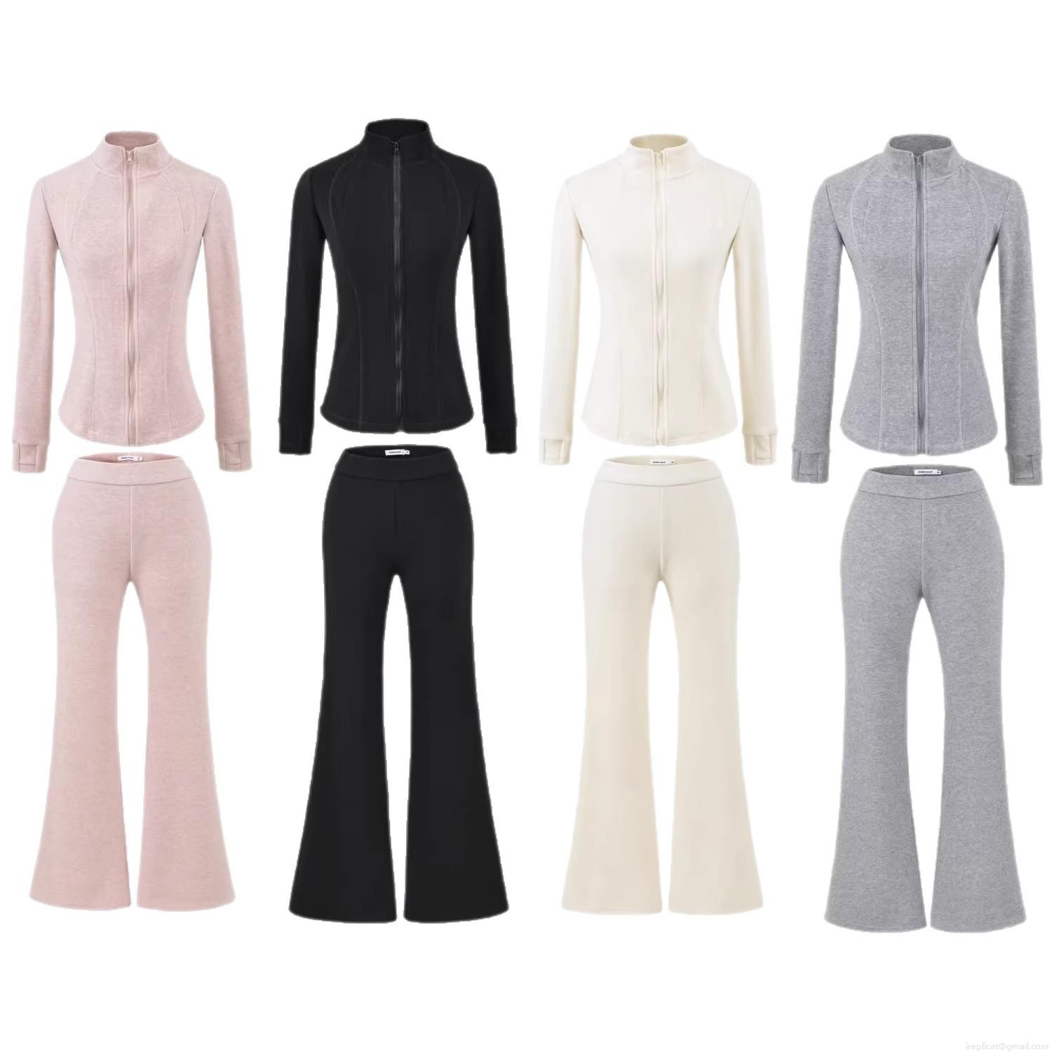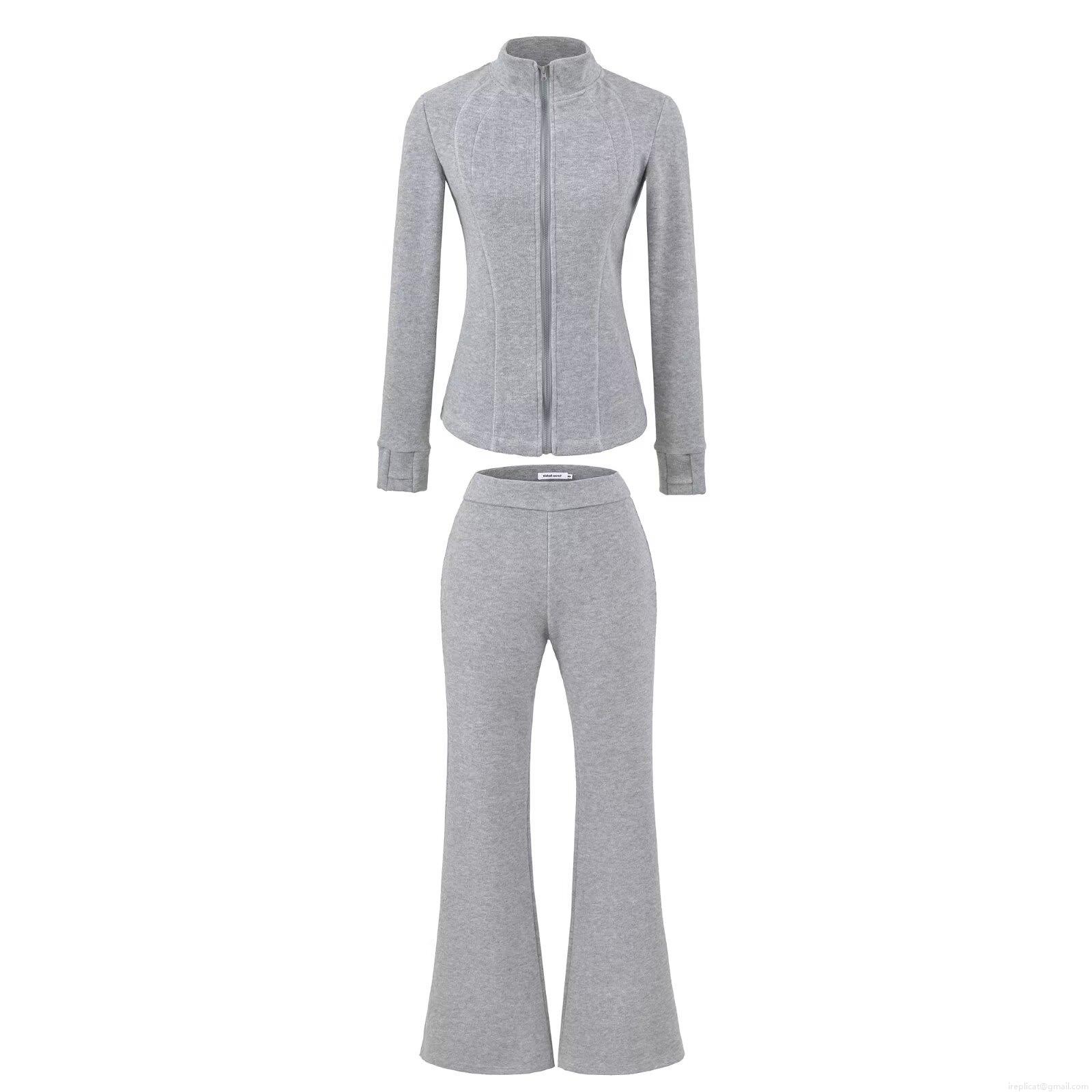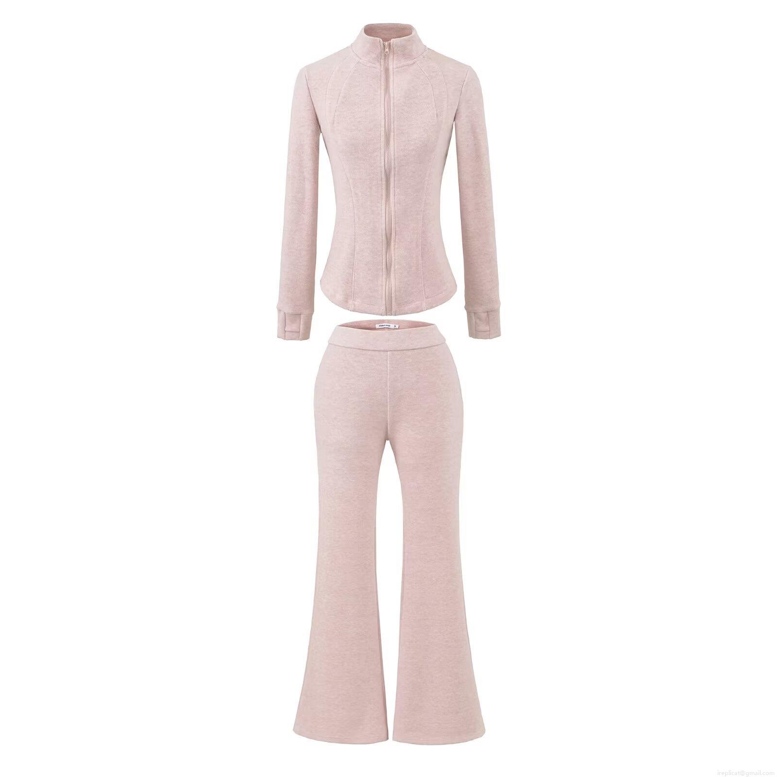 • Women's 2-Piece Slim Fit Sports Tracksuit Set Rayon Blend Stand Collar Zipper Jacket and High Waist Flare Yoga Pants for Fitness Casual Streetwear Women