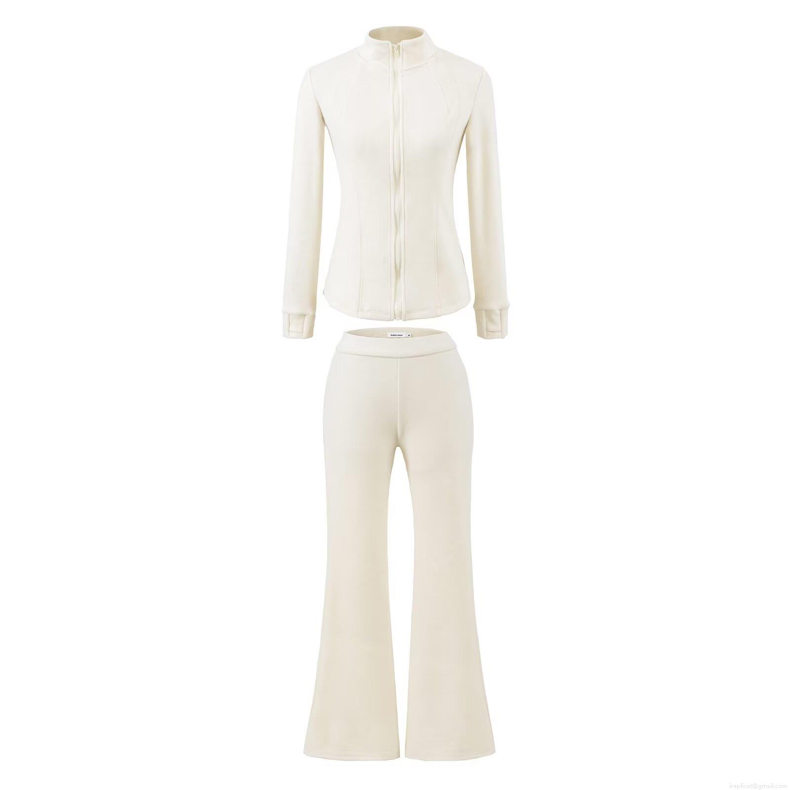 Women's 2-Piece Slim Fit Sports Tracksuit Set Rayon Blend Stand Collar Zipper Jacket and High Waist Flare Yoga Pants for Fitness Casual Streetwear Women