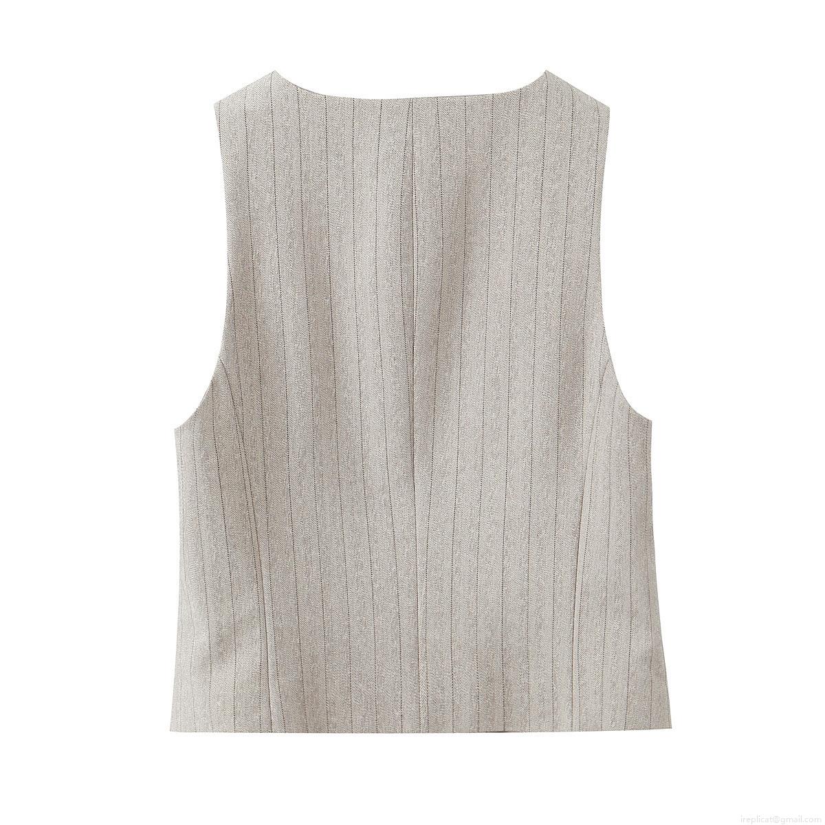 • Women's 2-Piece Striped Suit Set Elegant Button-Up Vest Waistcoat And High Waist Wide Leg Pants Set Office Lady Business Casual Streetwear Outfit