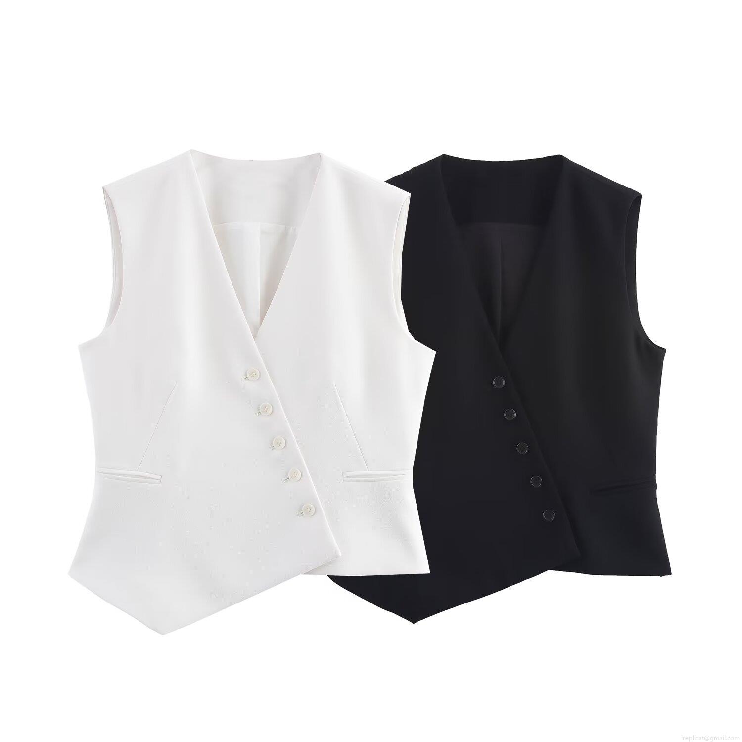 Women's 2-Piece Suit Set Asymmetric Sleeveless Vest Top and High Waist Wide Leg Pleated Trousers Solid Polyester Office Business Streetwear Outfit