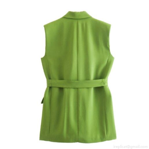 • Women's 2-Piece Suit Set Chic 100% Polyester Sleeveless Double Breasted Blazer Vest With Belt And High Waist Wide Leg Pants Office Casual Streetwear Grass Green Outfit