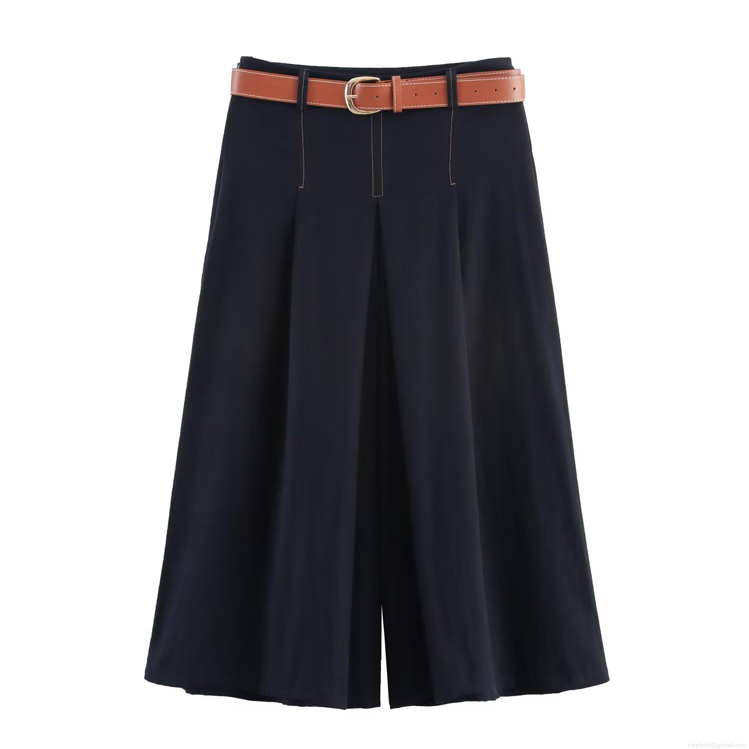 Solid Color, Button Decoration, Contrasting Color Bright Lines, Contrasting Stitching, Belt Accessories
