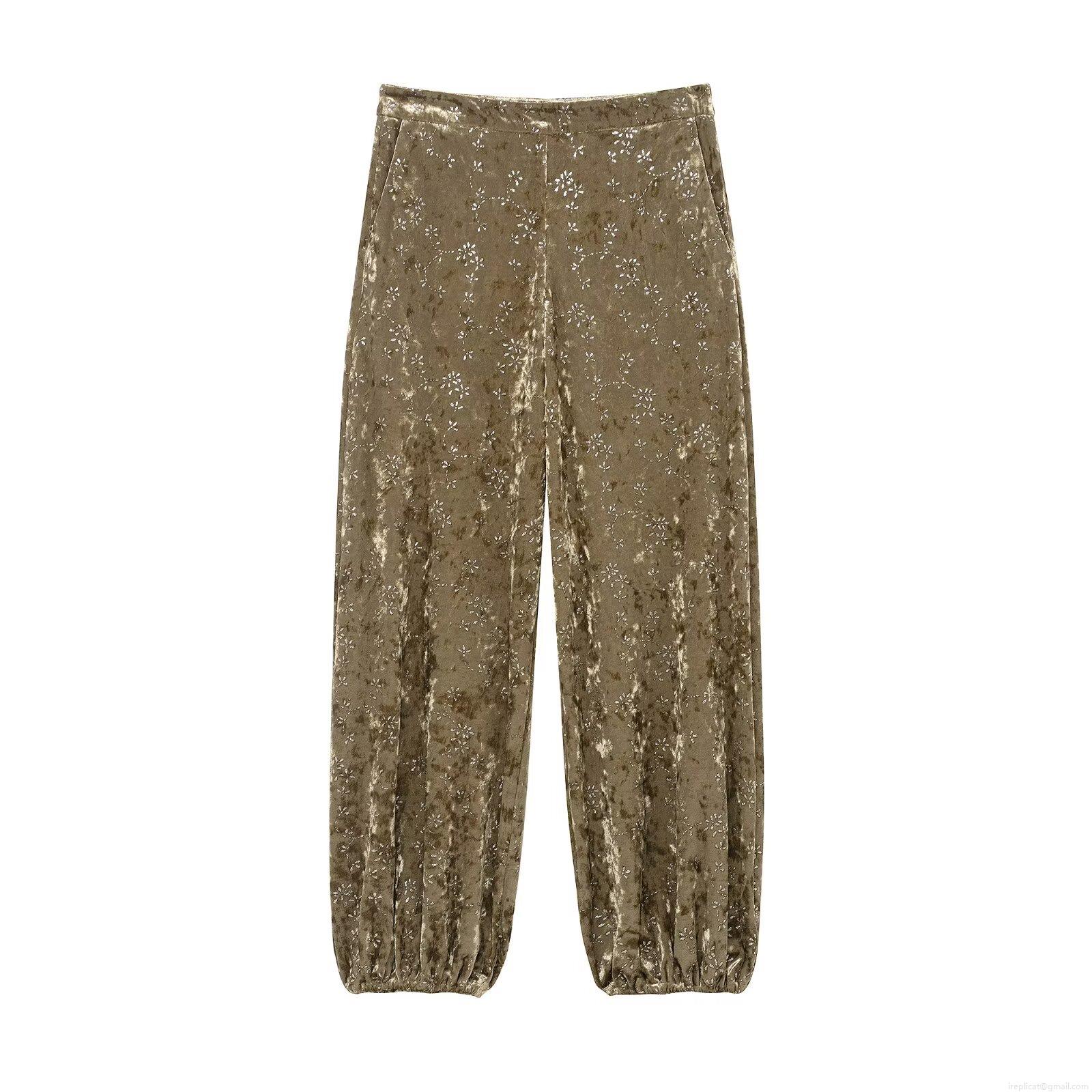 • Women's 2-Piece Velvet Suit Set Metallic Floral Print Belted Blazer and Cuffed Trousers Retro Casual Streetwear Tracksuit For Women