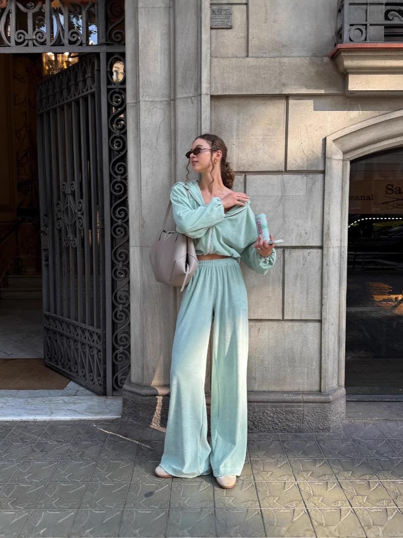 • Women's 2-Piece Velvet Tracksuit Set Hooded Zip-Up Sweatshirt And High Waist Wide Leg Pants Casual Streetwear Sporty Loungewear Outfit Solid Color