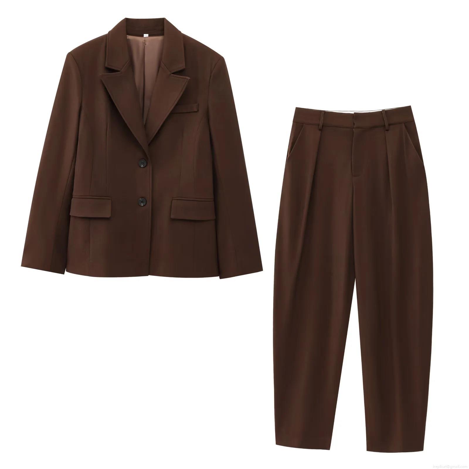• Women's 3-Piece Business Suit Set Deep Brown Lapel Single Breasted Blazer High Waist Wide Leg Pants And A-Line Mini Skirt Office Lady Professional Workwear Outfits