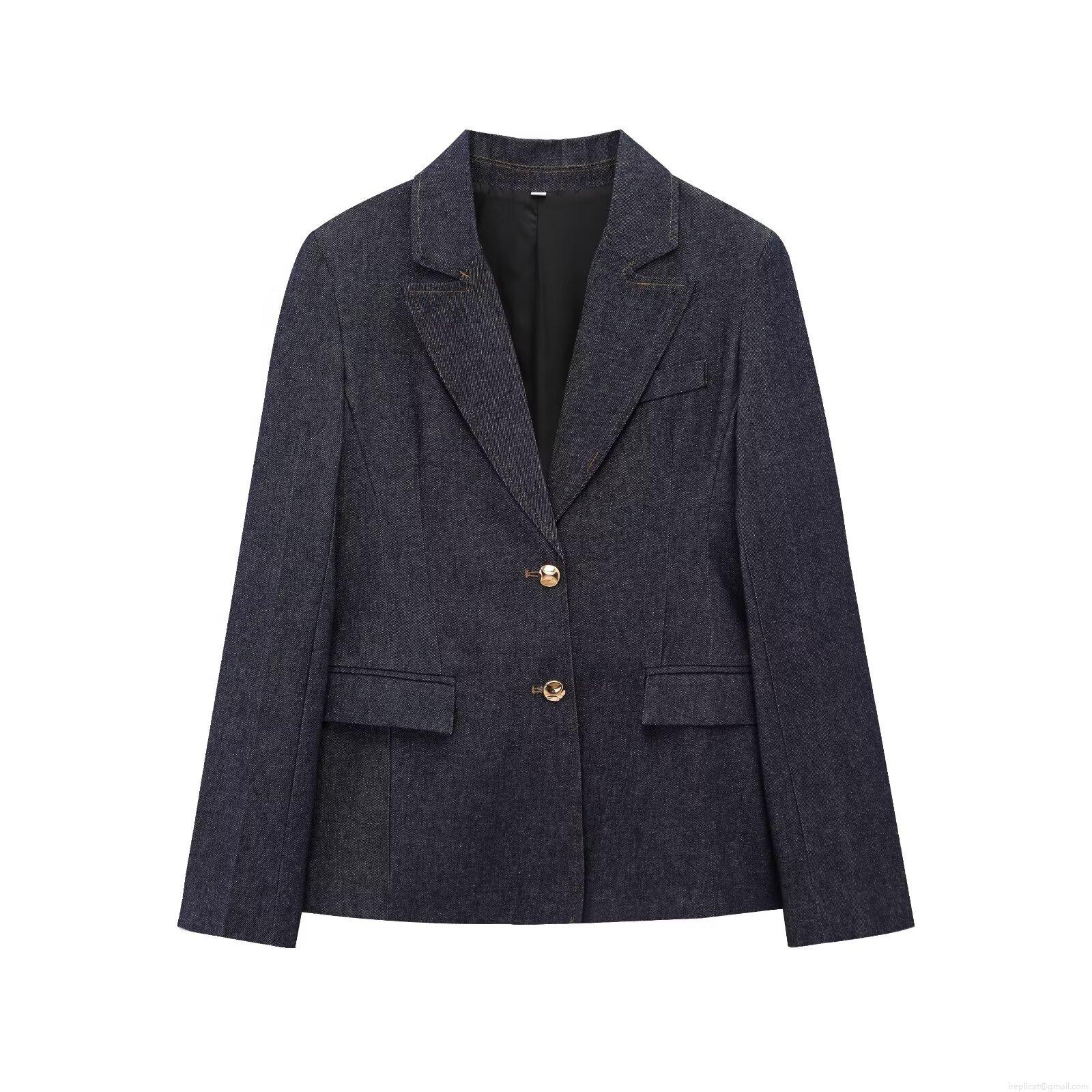 Women's 3-Piece Dark Blue Denim Set Includes Blazer Jacket Bustier Corset Top And High Waist Wide Leg Pants Streetwear Chic Casual Outfit For Women