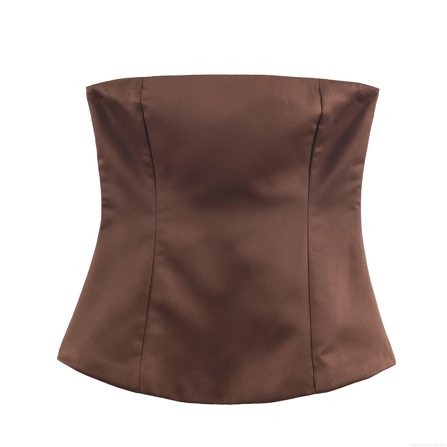 • Women's 3-Piece Satin Suit Set Backless Blazer With Tube Top And Wide Leg Pants Chic Streetwear Coffee Brown Party Commute Outfits