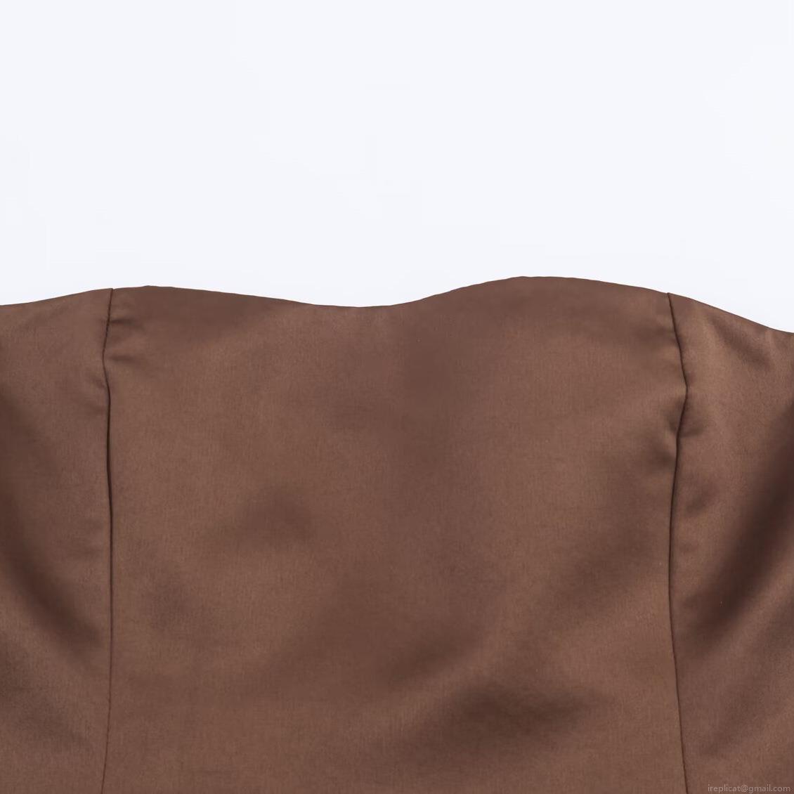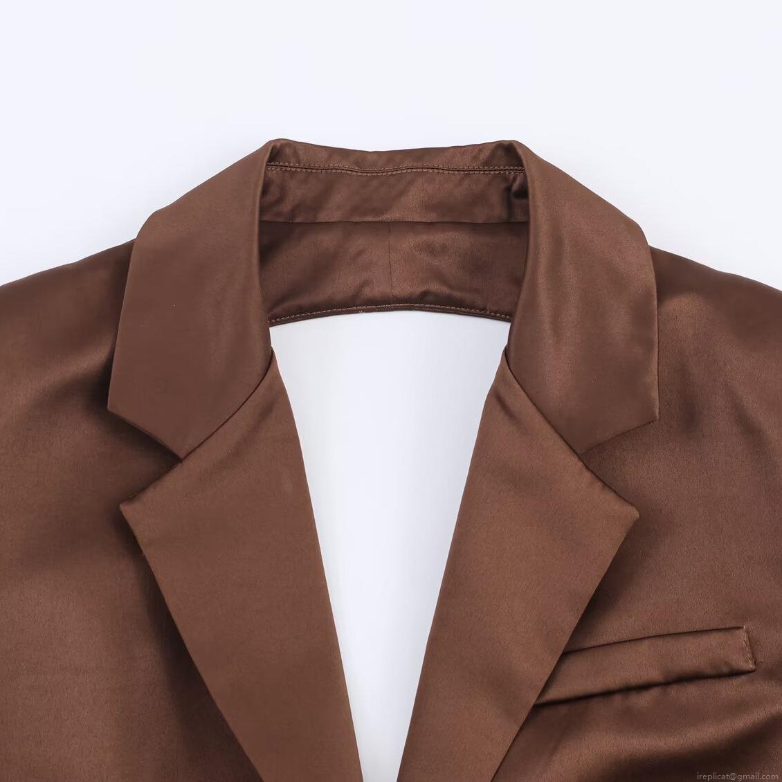 • Women's 3-Piece Satin Suit Set Brown Open Back Blazer Cutout Jacket Strapless Bandeau Top High Waist Wide Leg Trousers Elegant Office Commuter Outfit